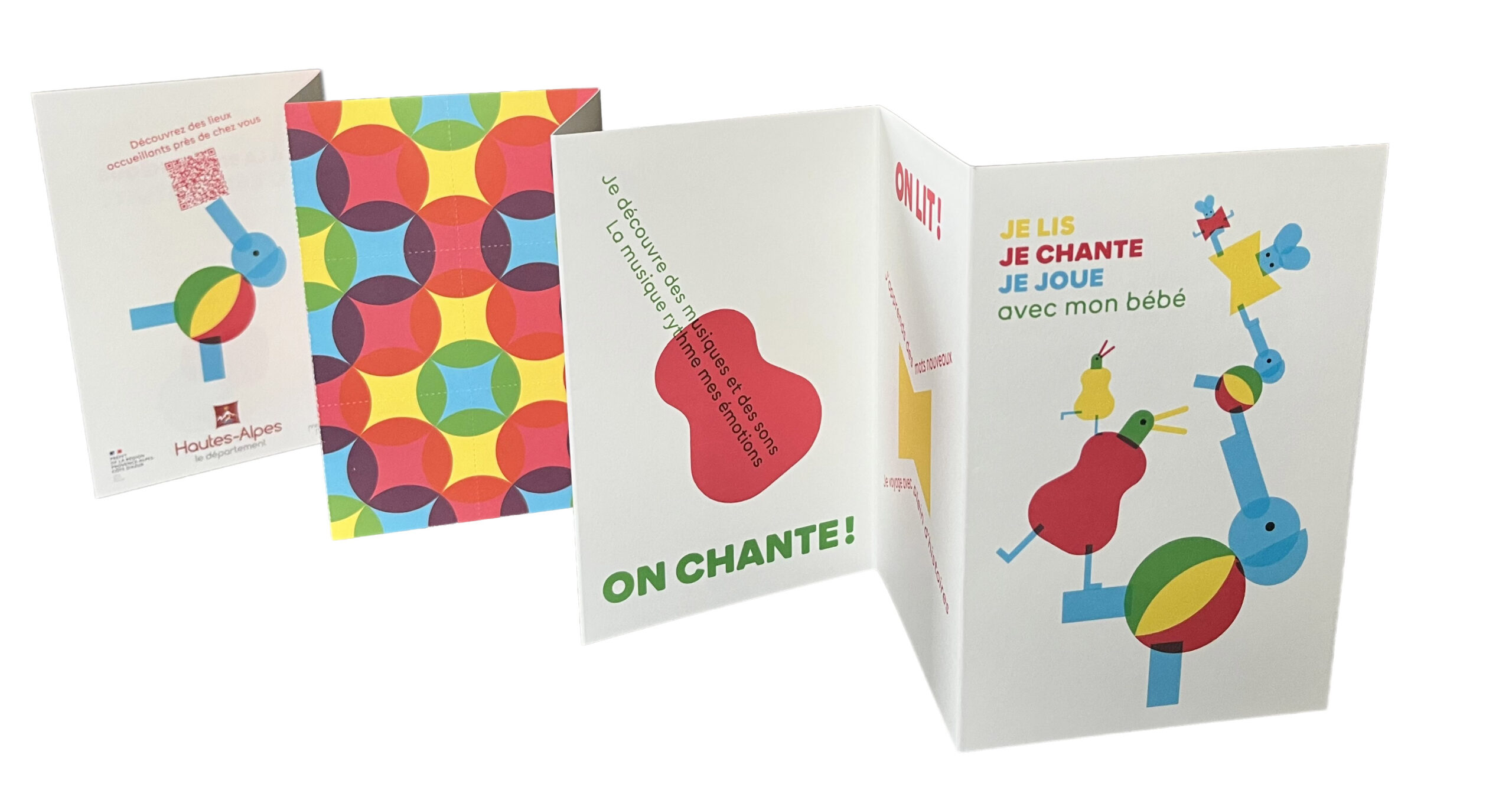 Cet objet en papier, original et innovant, est à la fois un leporello, livre accordéon illustré par Liuna Virardi, et un jeu prédécoupé. Il a été conçu pour les inciter à lire, jouer et chanter ensemble. Il leur rappelle aussi que les bibliothèques accueillent les bébés et leurs accompagnants, gratuitement.