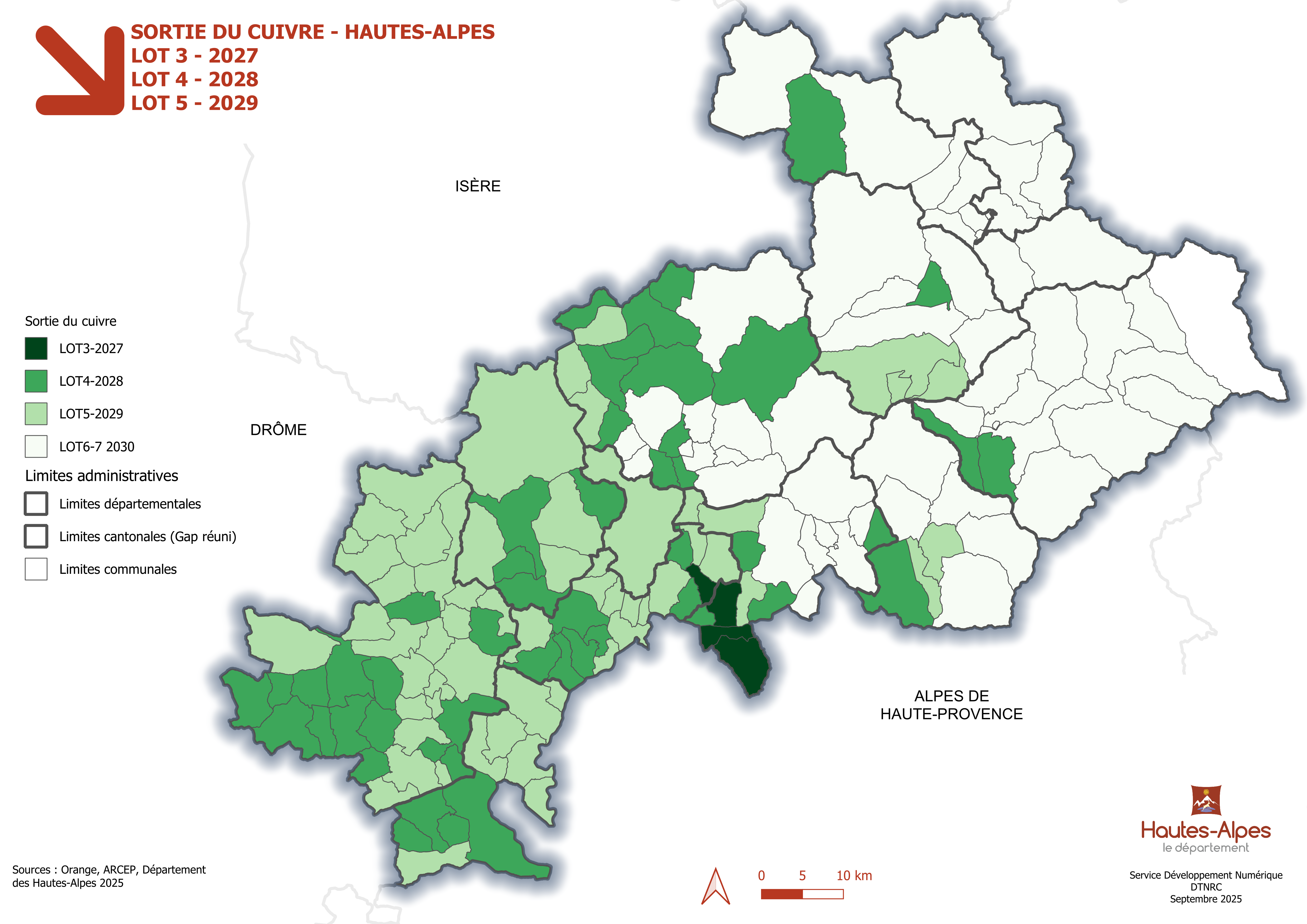 Lancée avec le plan France Très Haut Débit dès 2015, la montée en puissance de la fibre transforme le paysage numérique haut-alpin, même si seuls 28 % des foyers ont franchi le pas. Un chiffre que le Département souhaite voir grimper rapidement. Orange, opérateur historique, prépare en effet le démantèlement du cuivre et l’arrêt du réseau téléphonique entre 2027 et 2030. Dans les communes d’Avançon, Bréziers, Rochebrune et Théus, la bascule sera effective dès 2027. Passé ce délai, les habitants non raccordés à la fibre risquent d’être privés de téléphone et d’internet.