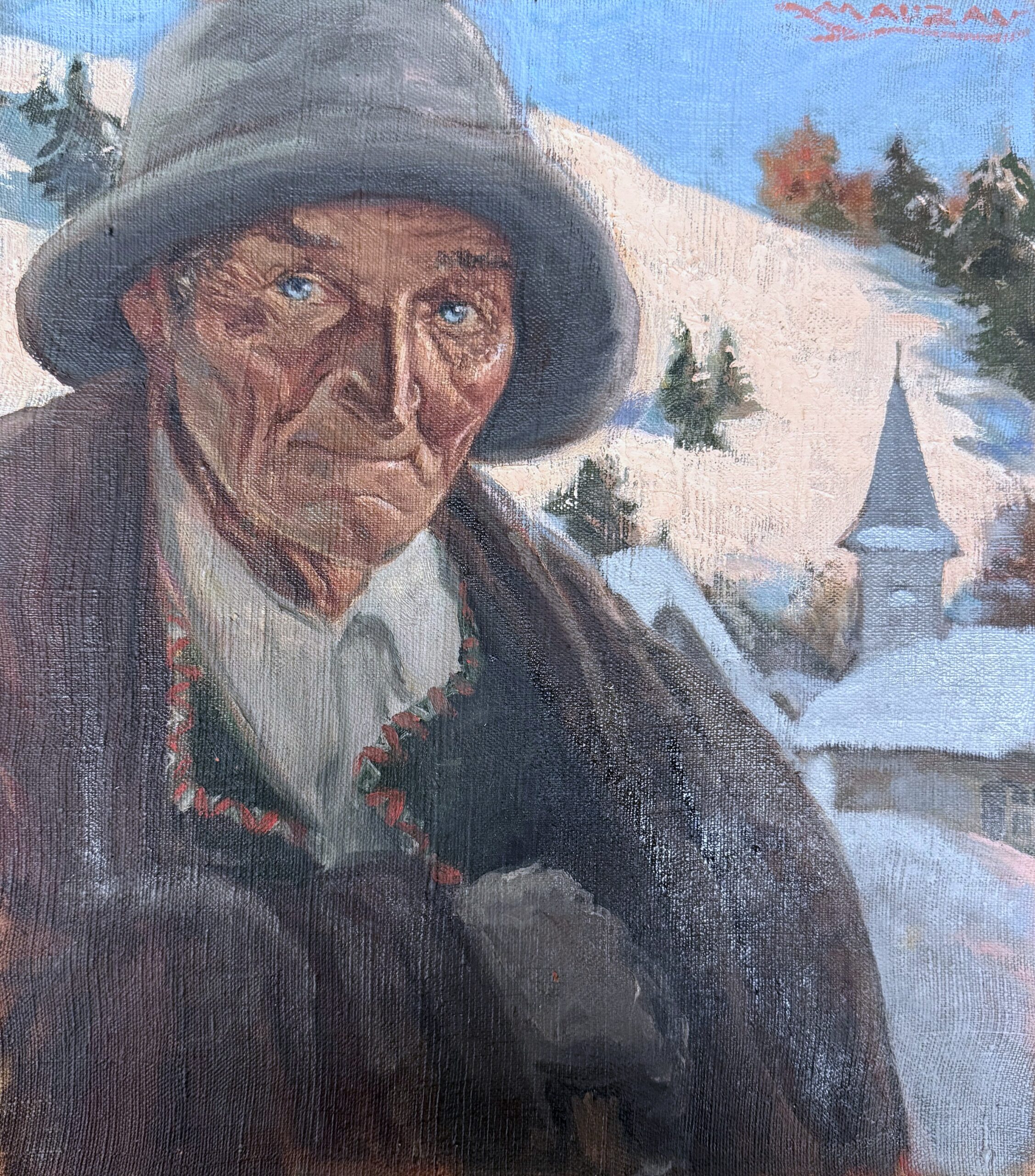 Cette peinture fait partie d’une série de portraits de femmes et hommes des mondes ruraux auxquels Mauzan s’est beaucoup intéressé après son retour en France en 1932, puis son installation à Gap au début de la Seconde Guerre mondiale. Il sillonne alors les vallées et villages du Champsaur.