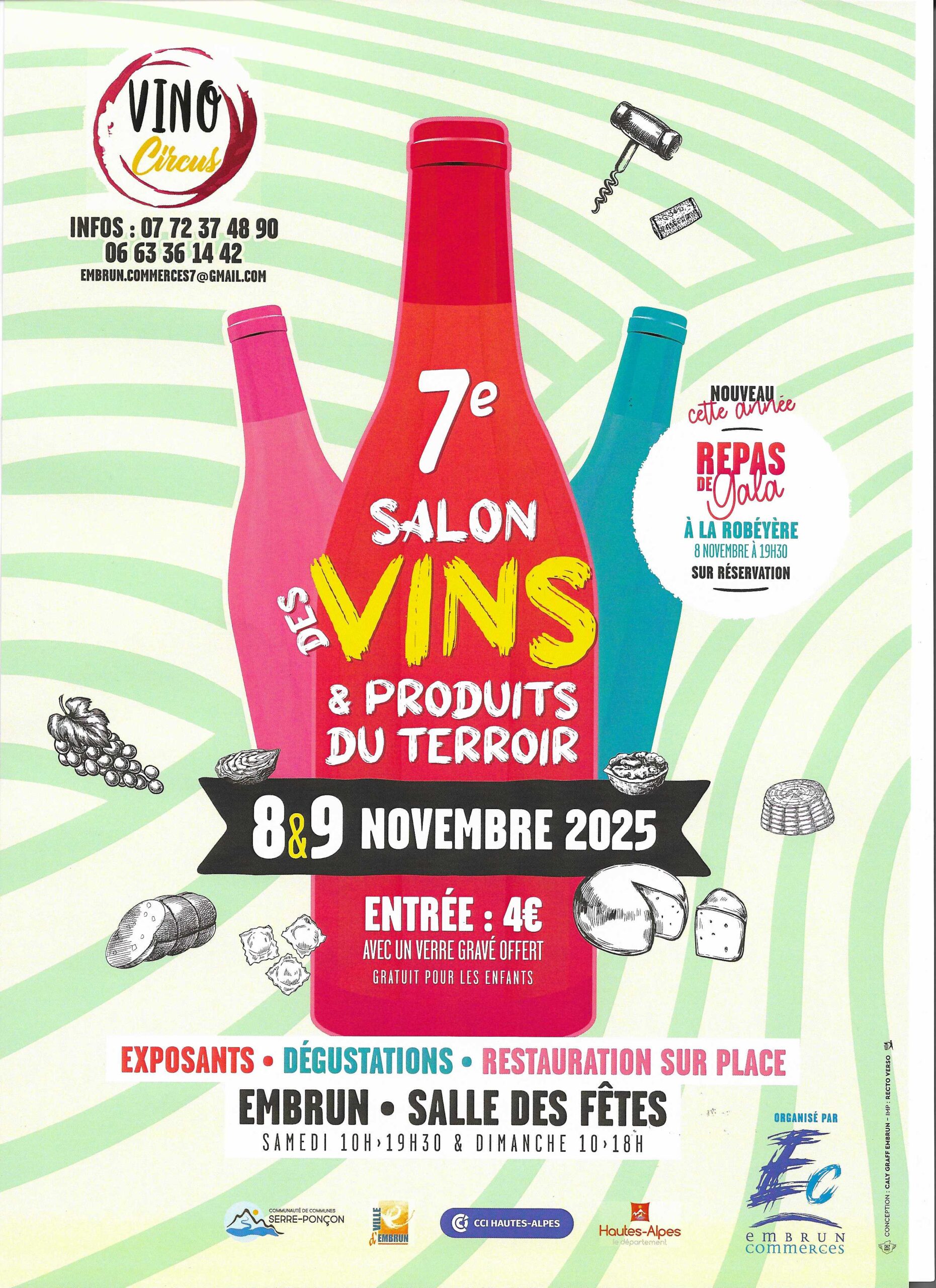 Côté vins, partez à la rencontre de producteurs passionnés des régions : Beaujolais – Alsace – Languedoc – Val de Loire – Provence – Vallée du Rhône – et les Vignerons des Hautes-Alpes. Côté saveurs, laissez-vous tenter par une sélection de délices : Liqueurs artisanales des Hautes-Alpes – Chocolats fins – Foie gras – Huîtres de Bretagne – Noix, huile de noix et crème de marron. Une restauration sur place sera proposée tout au long du week-end (possibilité de repas en extérieur selon la météo). Venez partager un moment de découverte et de plaisir gustatif dans une ambiance chaleureuse et festive ! COMPLET Repas de gala le samedi soir à 19h30 à l’Hôtel La Robéyère (sur réservation) Menu et inscription : https://www.helloasso.com/associations/embrun-commerces/evenements/gala-vino-circus