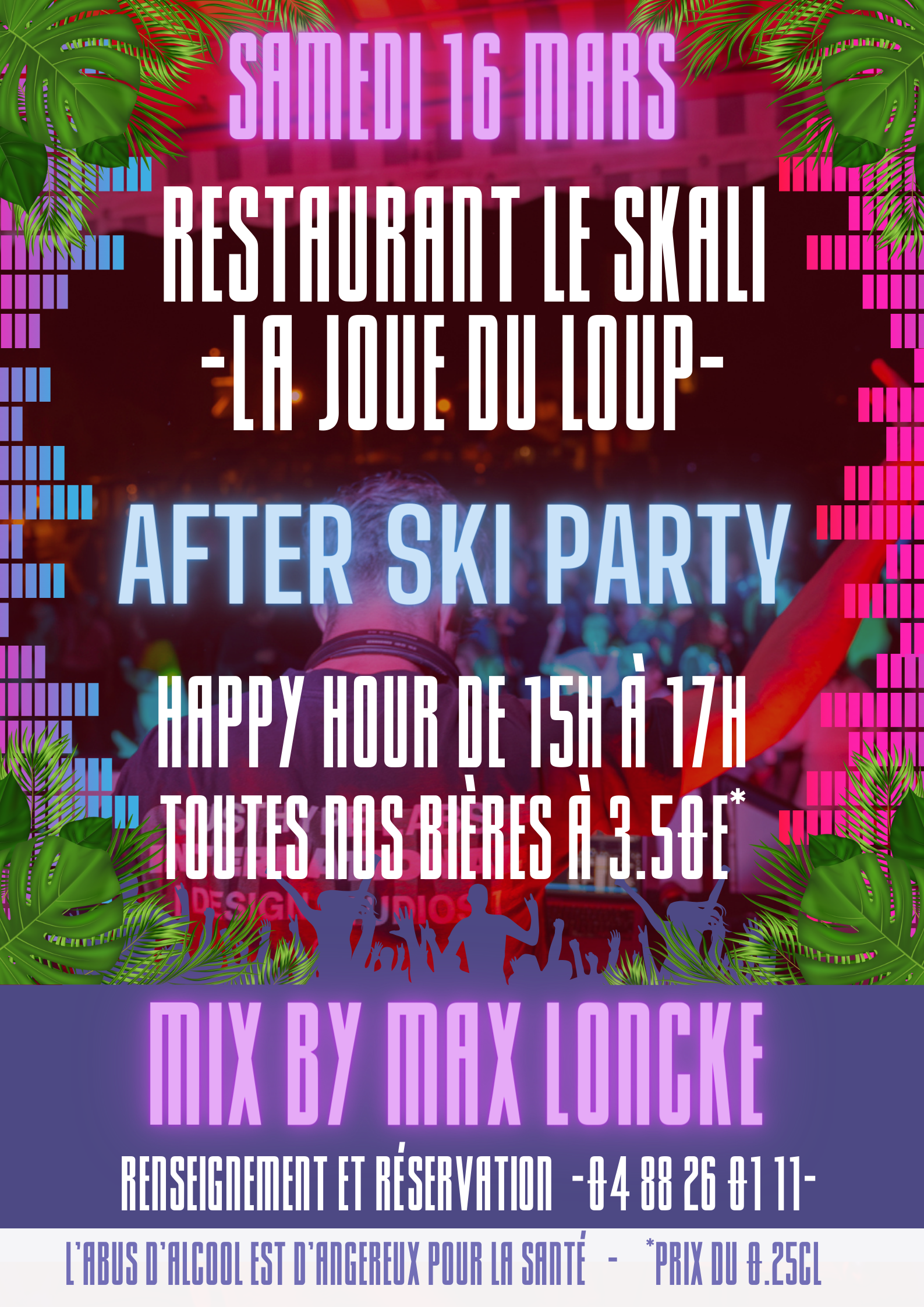 Retrouvez-nous en after ski au Skali le 16 mars ! Mix by Max Loncke de 13h à 19h et Happy Hour de 15h à 17h. Renseignements et réservation au 04 88 26 01 11. L'abus d'alcool est dangereux pour la santé.