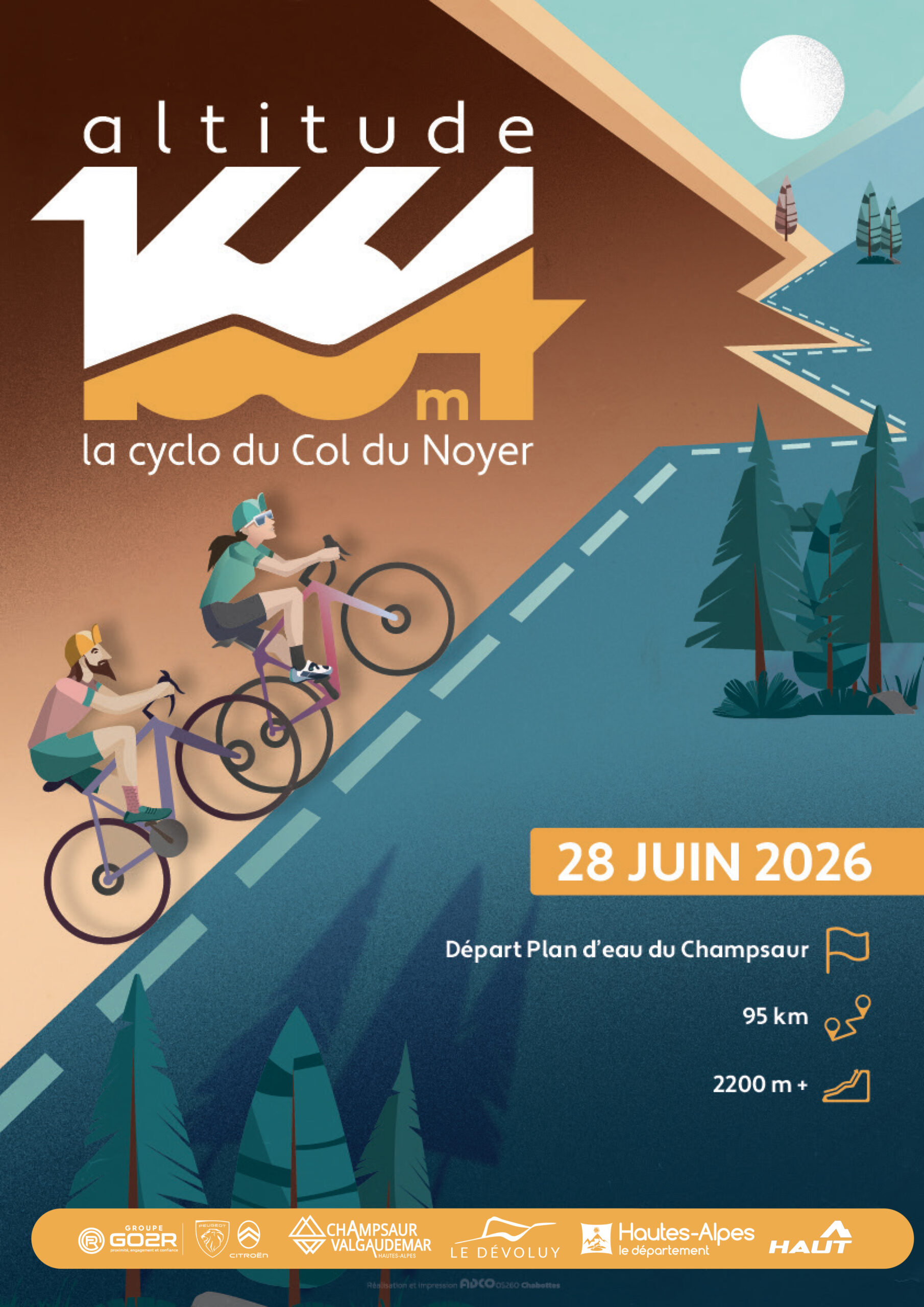 Ouverture des inscriptions le 07/04. Restez connectés ! Le tracé est commun à la course et à la randonnée. Il fait 95km et 2200m de dénivelé positif. Le départ est donné depuis le plan d’eau de Saint Bonnet en Champsaur, avec un arrivée au même endroit. La randonnée est ouverte aux enfants mineurs obligatoirement munis d’une autorisation parentale. L’utilisation de vélos électriques est autorisée uniquement sur la randonnée.