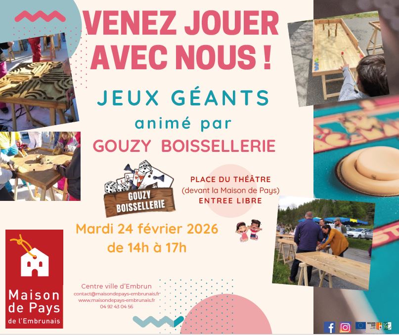 Gouzy Boissellerie vous propose une après-midi ludique avec des jeux géants pour petits et grands ! Rendez-vous sur la place du théâtre, devant la Maison de Pays, pour un moment de plaisir en famille ou entre amis.