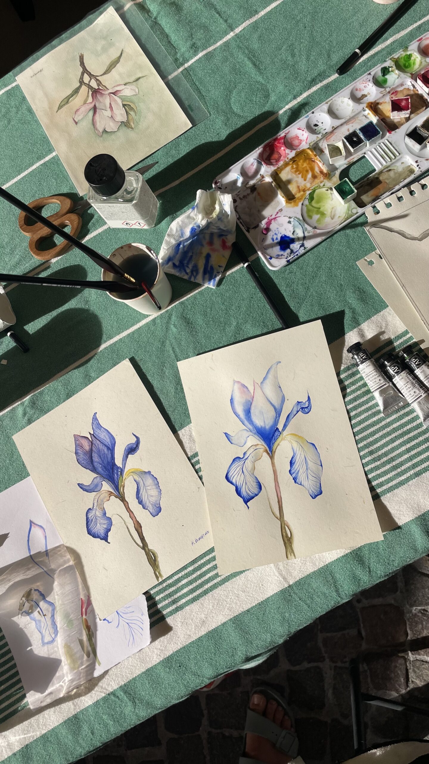 Programme de l’atelier (3h) - Découverte des techniques d’aquarelle Présentation des différentes méthodes et effets possibles avec l’aquarelle. - Expérimentations pratiques Réalisation d’essais d’aplats, de dégradés et de mélanges de couleurs. - Choix du sujet à peindre Sélection d’un tableau ou d’un motif à reproduire selon les envies de chacun. - Croquis préparatoire Dessin à main levée du sujet choisi, avec apprentissage des repères et du cadrage. - Mise en couleur et finalisation Application des couleurs à l’aquarelle et finitions du projet artistique