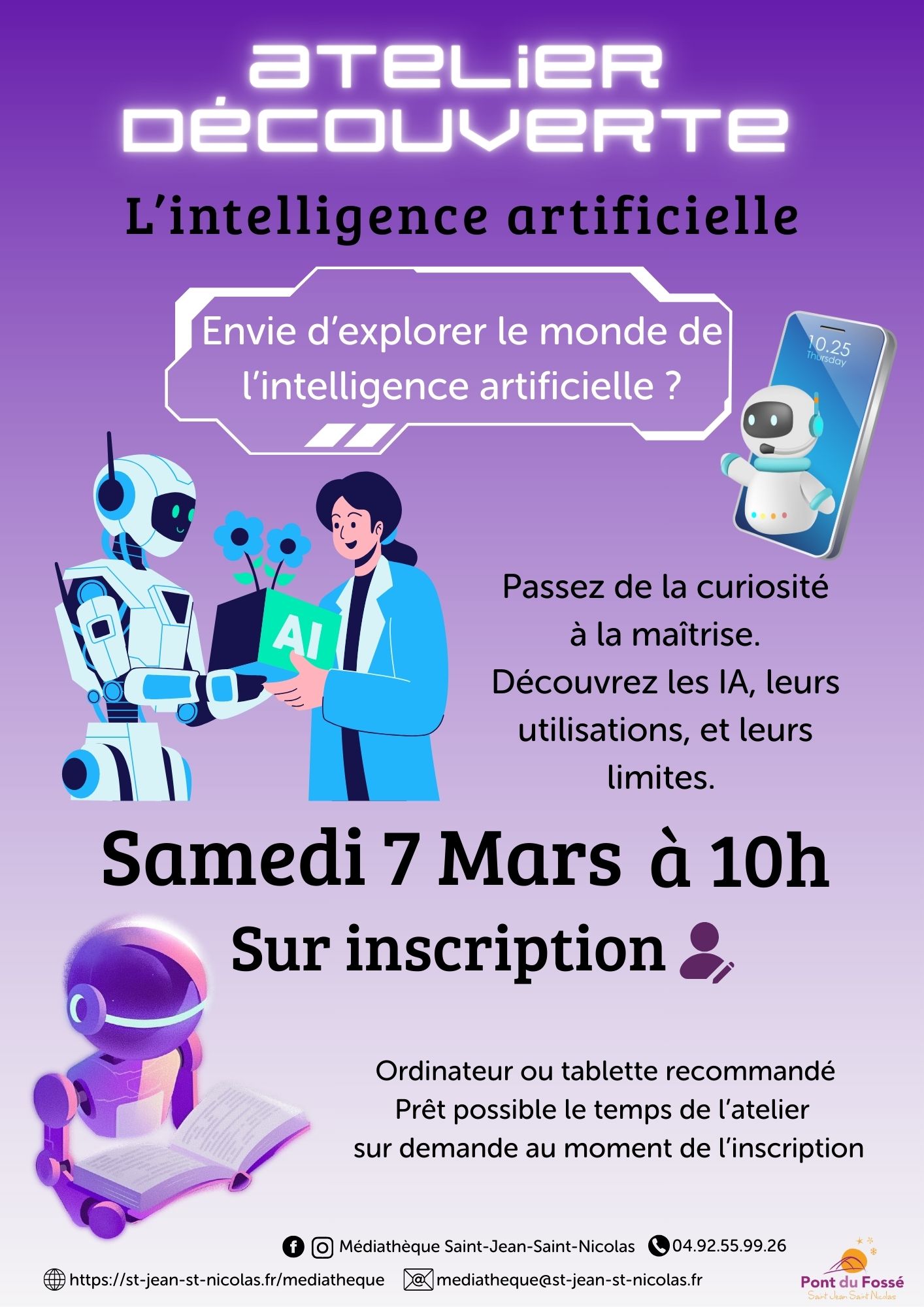 Passez de la curiosité à la maîtrise. Découvrez comment fonctionne réellement l’intelligence artificielle et apprenez à l’utiliser de manière concrète, utile et responsable : rédaction, images, aide au quotidien… tout en comprenant ses limites et les précautions essentielles. Un atelier pratique pour démystifier l’IA, formuler de meilleures demandes et garder le contrôle sur vos données. Sur inscription.