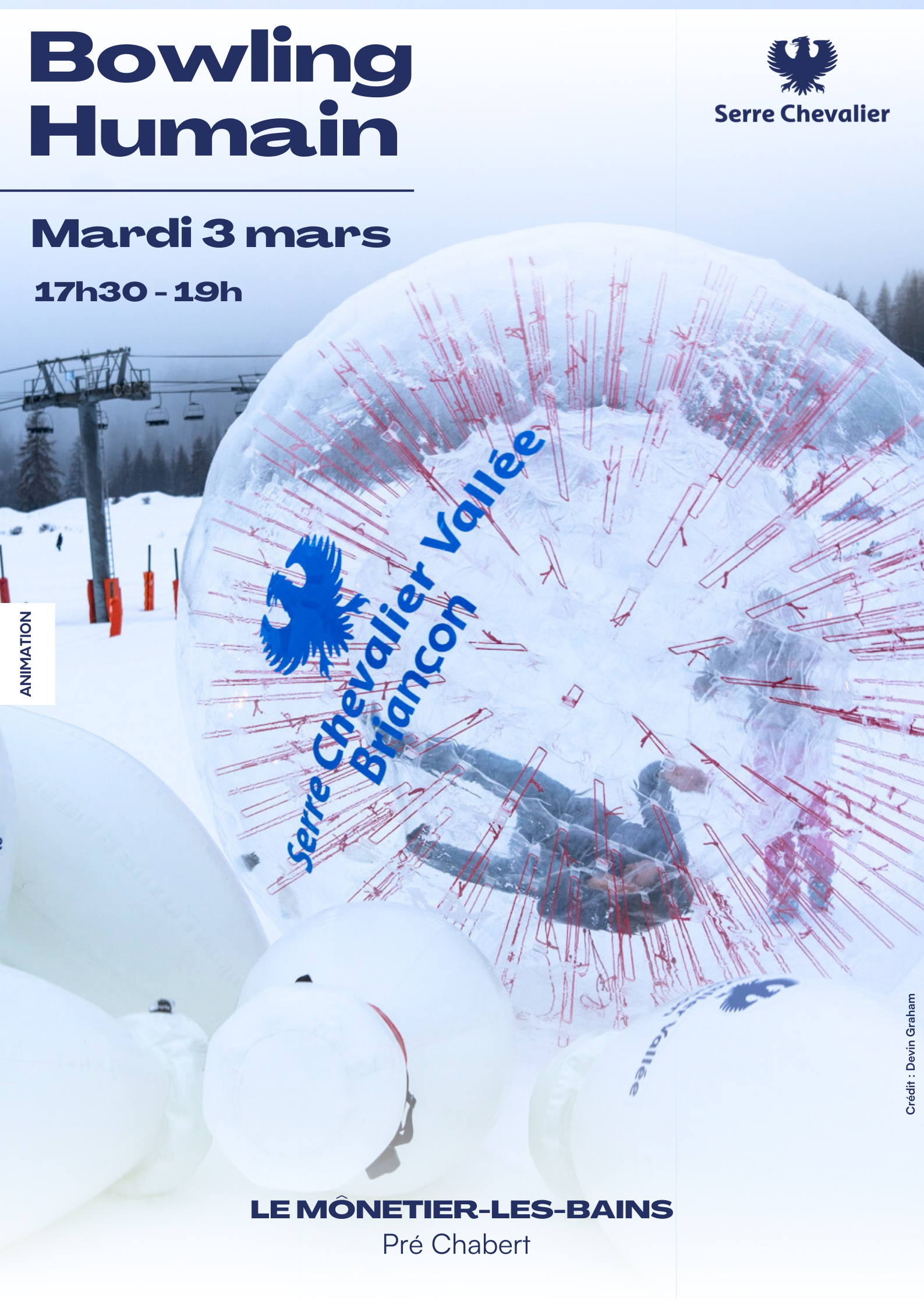 Venez découvrir une activité fun et ludique. Vous serez au cœur de l’action en étant à l’intérieur de la boule de bowling. Alors qui arrivera à faire un strike? * A partir de 8 ans et * à partir de 1,20 m L’animation peut-être annulée selon les conditions météorologiques.
