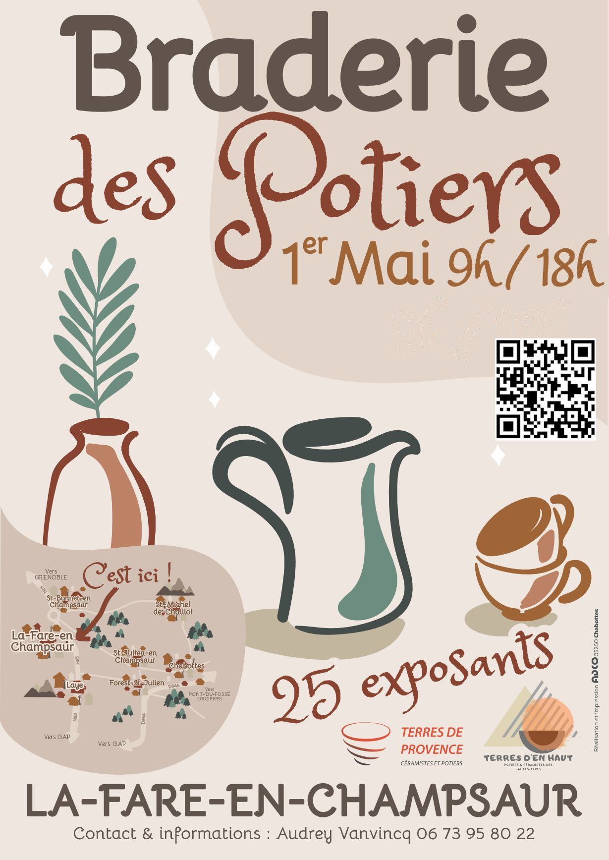 25 céramistes exposeront leur production dans une braderie de fin de série, pièces déformées ou avec un petit défaut, pièces atypiques, uniques … Il y aura aussi sur place un stand de boissons chaudes avec thé, café et sirops, ainsi qu’un coin de petite restauration et la brasserie Walpine de Pont du Fossé.