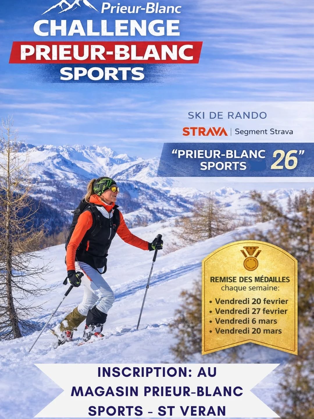 Le Challenge Prieur-Blanc Sports est un événement sportif convivial dédié aux passionnés de ski de randonnée. Organisé en partenariat avec l'application Strava, il propose un segment chronométré intitulé : « Prieur-Blanc Sports 26 ».