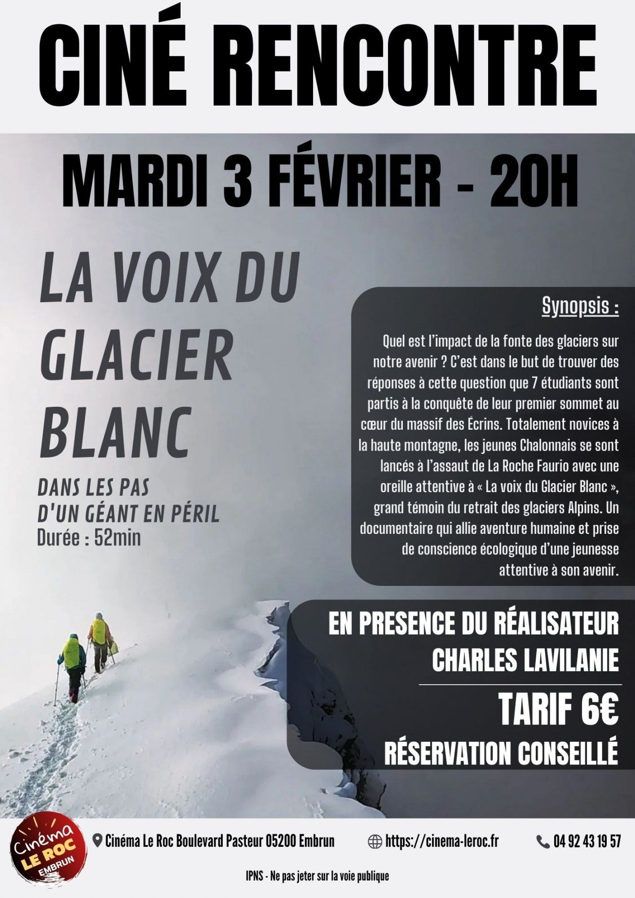 Durée : 52min Résumé : Sept étudiants chalonnais, novices en alpinisme, partent à l’assaut de La Roche Faurio dans le massif des Écrins. À travers leur aventure, ils découvrent « la voix du Glacier Blanc », témoin du recul des glaciers alpins, et interrogent l’impact de cette fonte sur notre avenir.
