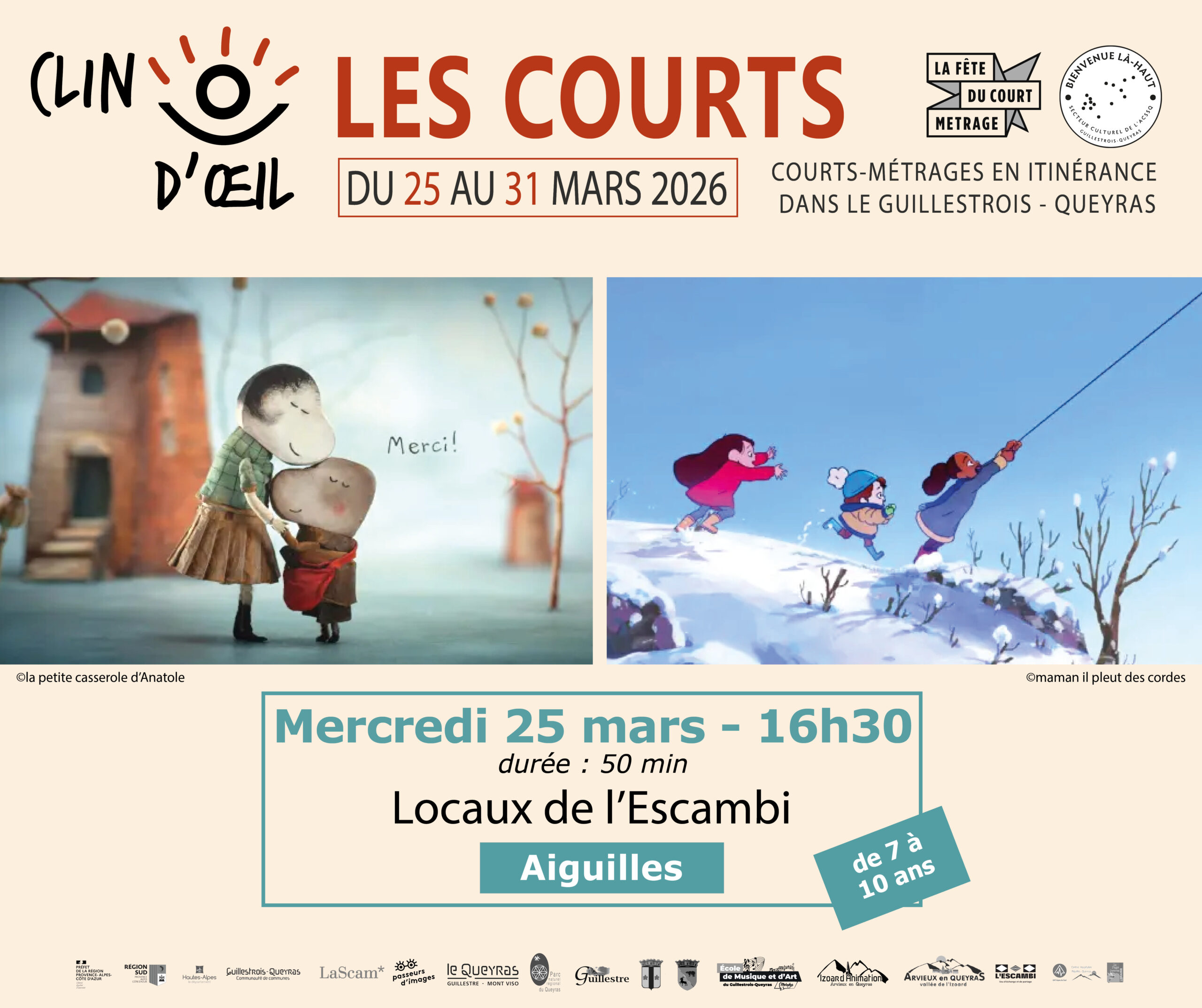 Clin d’œil, festival de courts métrages en itinérance dans le Guillestrois-Queyras coordonné par Bienvenue là-haut te propose cette séance.