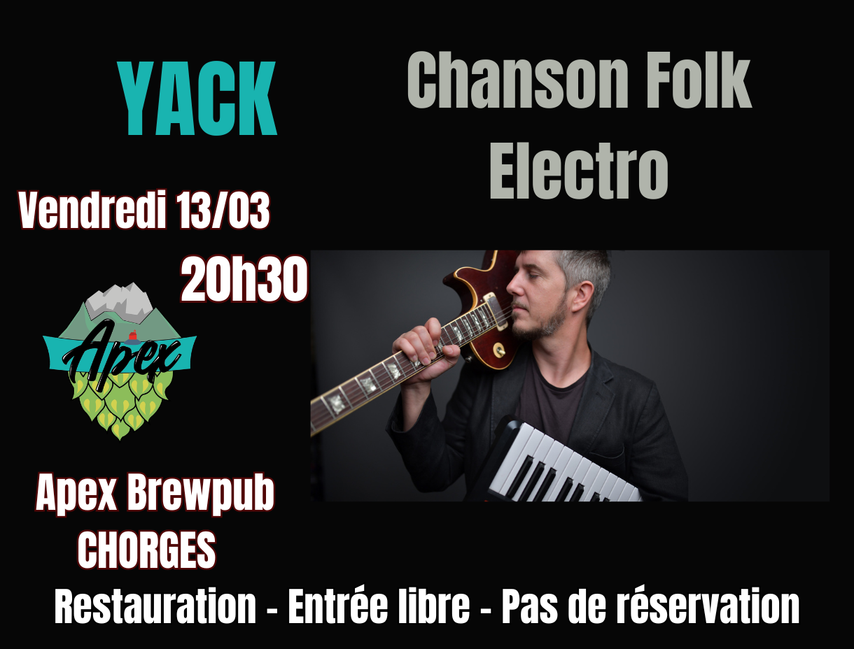 YACK c’est qui ? YACK, c’est un puissant mélange de chanson, folk et électro, pour une musique intense portée par des textes qui marquent les esprits. Projet solo mené depuis 2019 par le chanteur, guitariste et claviériste Yack, il s’enrichit sur scène de la complicité du percussionniste Josselin Doubliez. Leur aventure commune, née au sein du groupe La Mine de Rien (850 concerts, 5 albums entre 2002 et 2016), renaît en 2022 avec une énergie renouvelée. Sorti en novembre 2022, le premier EP Silence Radio marque un tournant vers un univers électro-folk captivant. Le duo a déjà partagé la scène avec Brigitte Fontaine, CharlElie Couture, Renan Luce, Miossec, Paris Combo ou encore Les Ogres de Barback. Inspiré par Serge Gainsbourg autant que par Stromae, YACK propose une chanson électro-poétique qui oscille entre mélancolie, révolte et douce ironie face aux absurdités de notre époque. YACK, c’est la promesse d’un live saisissant, qui touche au cœur et fait résonner l’âme des passionnés de musique authentique et de paroles sincères. Alors vous venez ? Comme d’habitude, nous vous proposerons de quoi manger et de quoi se désaltérer Restauration sur place