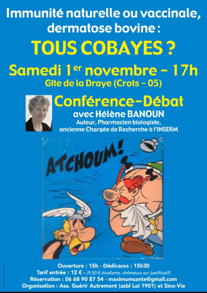 Auteur de : « La Science face au Pouvoir » Ouverture : 15h Dédicace : 15h30 Conférence-débat : 17h00 Asso Guérir autrement / Sino-Vie