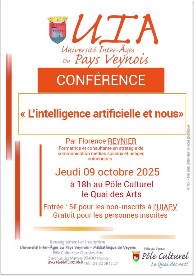 L’IA, c’est quoi ? Après avoir défini l’IA et les concepts qui l’entourent, découvrez les principaux acteurs et outils d’IA générative. Apprenez le prompt engineering, l’art de bien formuler sa requête, illustré de cas pratiques. La conférence questionnera, pour finir, les enjeux sociétaux, économiques, scientifiques, éthiques… liés au développement des IA. Réservation conseillée