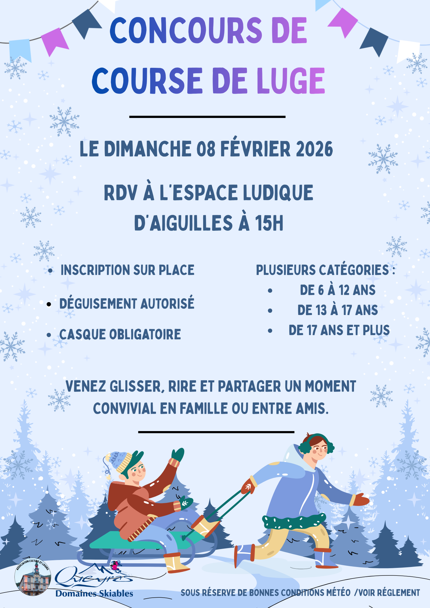 Tu as envie de t'amuser ? Alors, viens avec ta luge et ton casque et fais la course !
