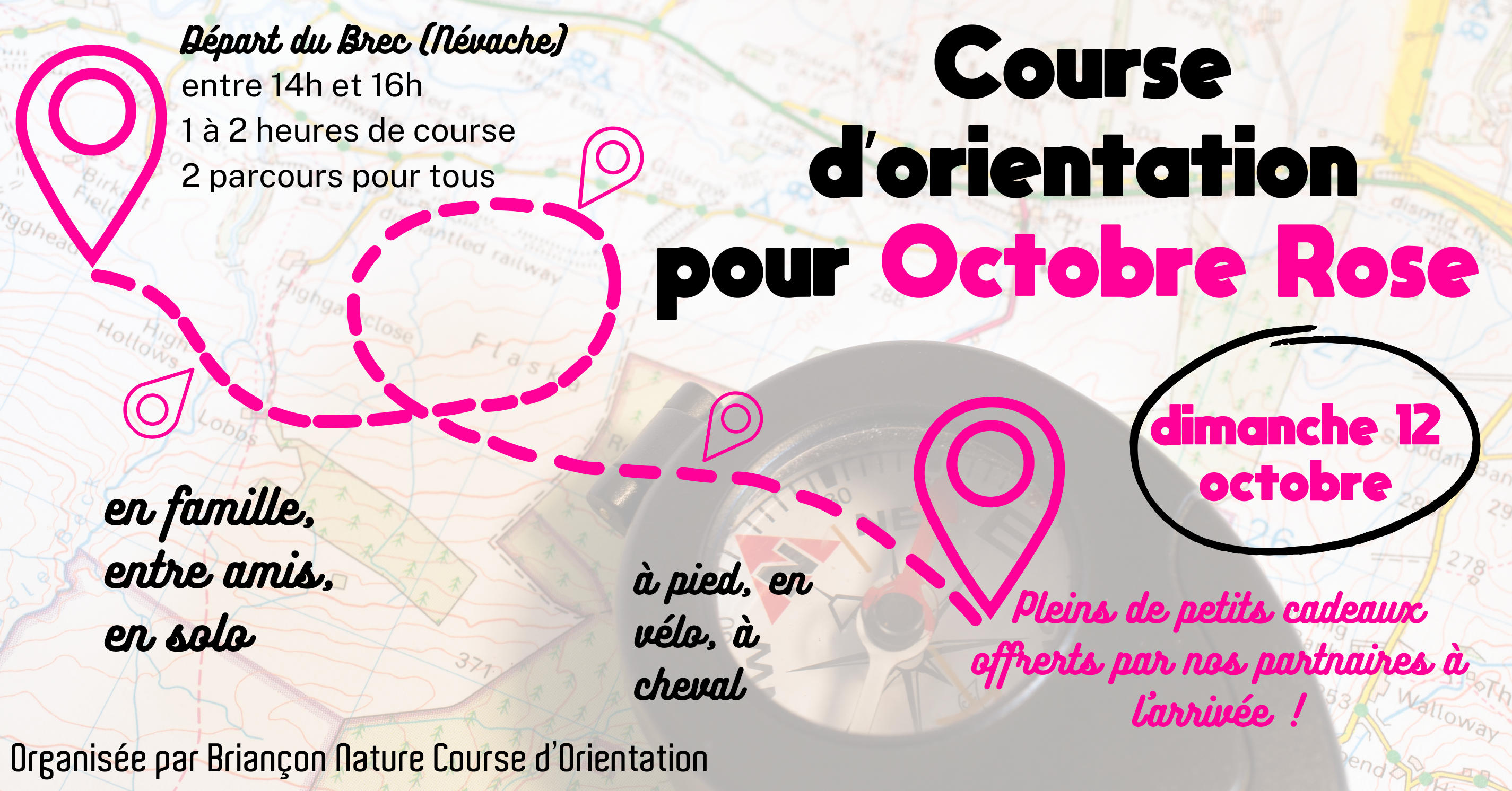La course d’orientation revient à Névache et pour la bonne cause ! Participation libre (on recommande un minimum de 10€ par adulte) et 100% reversée à Octobre Rose. Un parcours à point pour tous : en famille, entre amis ou solo, à pied, à vélo ou même à cheval !! En cerise sur le gâteau, pleins de petits cadeaux offerts par nos partenaires locaux seront à gagner.