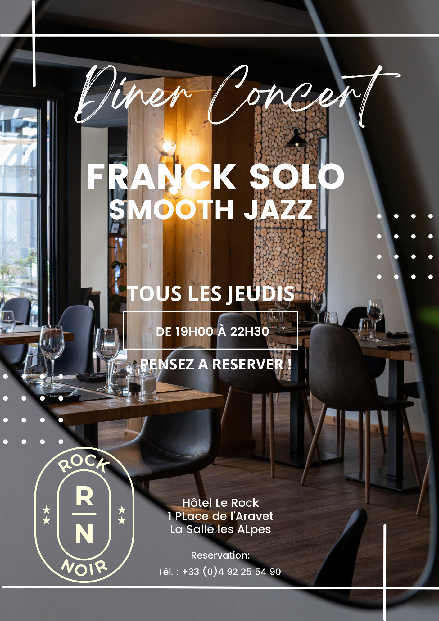 La musique de Franck Solo résonne dans une ambiance feutrée lors de ces dîners concert live de Smooth Jazz, une musique idéale pour accompagner votre repas.