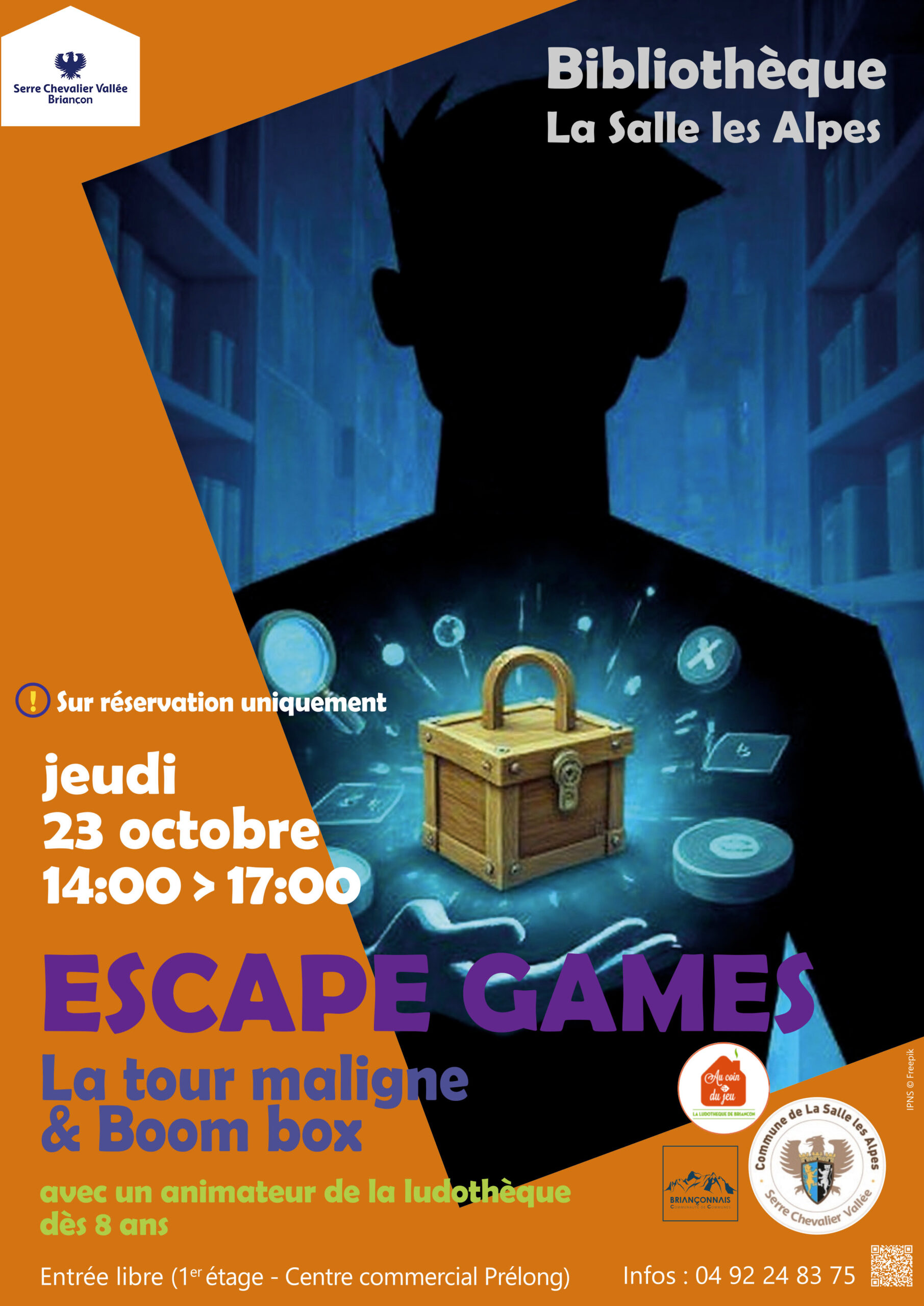 En famille ou entre amis, lancez-vous dans l’aventure pour résoudre les énigmes et récupérer le Graal retenu au cœur de la tour Maligne ou venir à bout de la boom box, un escape game qui allie robotique et musique. Venez mettre à l’épreuve votre réflexion, votre mémoire et votre esprit d’équipe ! En collaboration avec la ludothèque « Au coin du jeu » et la Communauté de communes du Briançonnais. Sur inscription