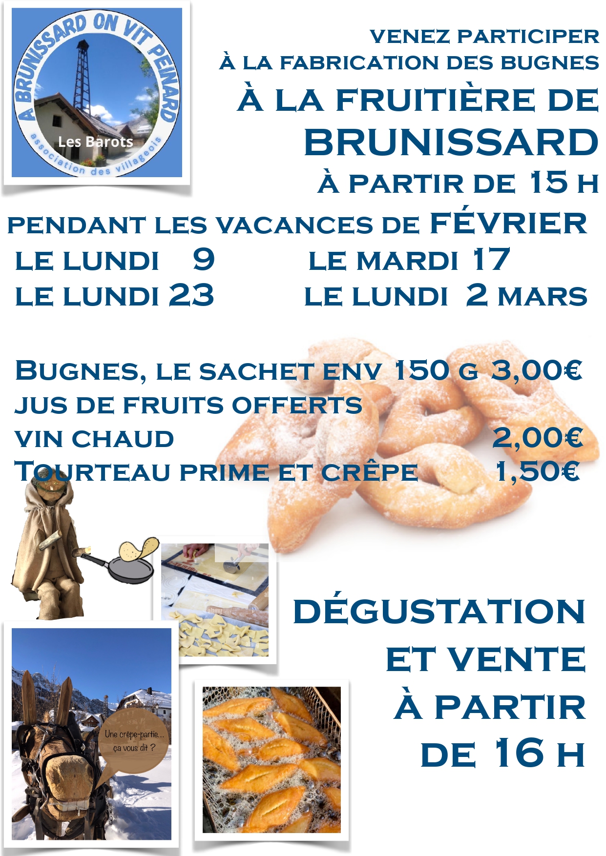 Après la confection de ces spécialités du Dauphiné, le temps sera consacré à la dégustation et au partage de ces bugnes artisanales. Il sera aussi possible d’en acheter pour faire durer le plaisir!
