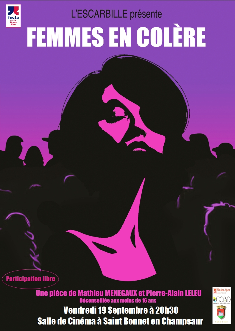 L’ESCARBILLE présente “Femmes en colère”. Une pièce de Mathieu MENEGAUX et Pierre Alain LELEU Une cour d’assises de nos jours à l’heure des délibérations. Une femme qui attend le verdict dans la cellule des accusés. Avoir été victime justifie t-il d’être bourreau ? Trois magistrats et six jurés populaires tiennent son sort entre leurs mains et vont devoir choisir entre punition et clémence. Une pièce de procès haletante non dénuée d’humour sur un sujet grave qui évite le manichéisme et le militantisme et qui interroge chacun de nous sur la décision qu’il prendrait s’il venait à être tiré au sort pour juger un tel cas. Déconseillé aux moins de 16 ans !