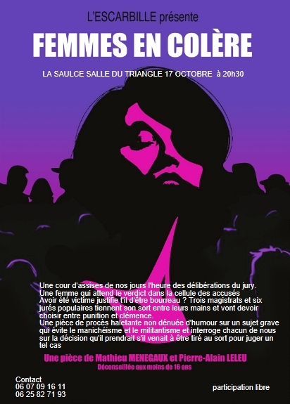 Une cour d’assises de nos jours à l’heure des délibérations. Une femme qui attend le verdict dans la cellule des accusés. Avoir été victime justifie t-il d’être bourreau ? Trois magistrats et six jurés populaires tiennent son sort entre leurs mains et vont devoir choisir entre punition et clémence. Une pièce de procès haletante non dénuée d’humour sur un sujet grave qui évite le manichéisme et le militantisme et qui interroge chacun de nous sur la décision qu’il prendrait s’il venait à être tiré au sort pour juger un tel cas.