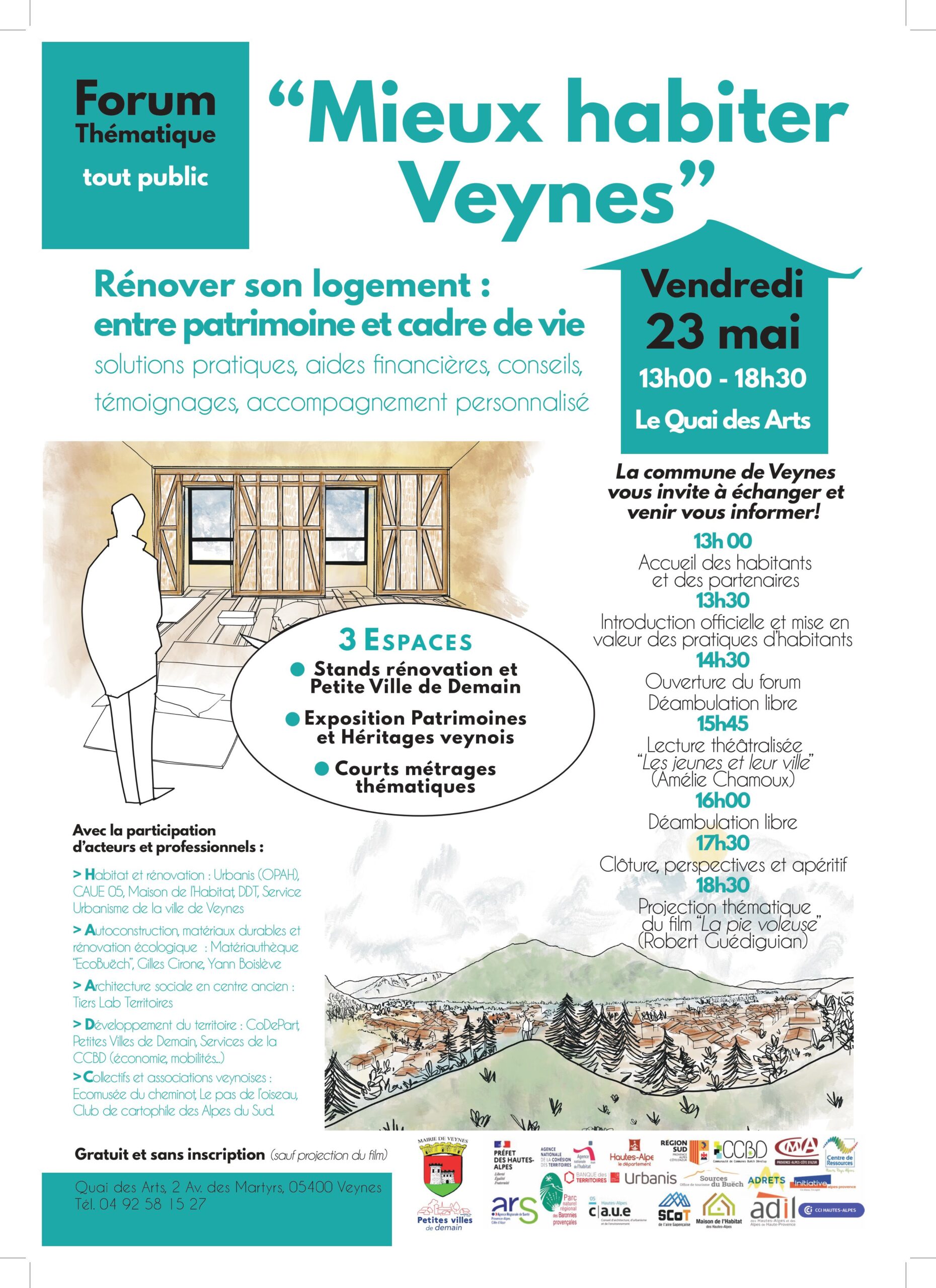 3 Espaces : Stands rénovation et Petite Ville de Demain Présentation de témoignages recueillis à Veynes auprès d’habitants qui ont rénové leur logement avec beaucoup d’ingéniosité et de passion,. Possibilité déchanges avec des architectes, constructeurs, organismes d’aide à la rénovation. Exposition Patrimoines et Héritages veynois Courts métrages thématiques