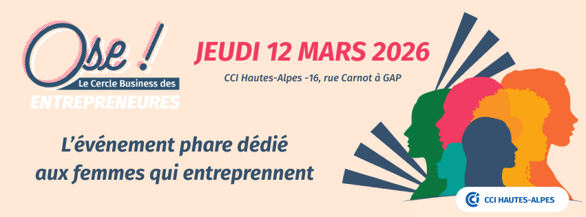 L’objectif est d’encourager les femmes à booster leur projet, trouver des financements, développer une entreprise et renforcer son réseau. Au programme : – 8h30 : Accueil café – Ouverture du village partenaires ​ – 9h00 : Temps protocolaire​ – 9h15 – 10h Atelier participatif animé par Coline Mauméjean – Nouveauté 2026 ! “Développer ses facilités et dépasser ses blocages” – Sur inscription ! limité à 35 personnes ​ – 10h – 10h40 : Témoignages de 3 cheffes d’entreprise ​ – 10h45 – 11h15 : Conférences Microsoft et AGEA​ : AGEA : “Entreprendre sereinement : les assurances qui protègent vraiment” Microsoft : “Créer une stratégie de prospection efficace avec les outils numériques” – 11h30 -12h30 : Concours de pitchs et remise des prix​ – 12h30 : Cocktail déjeunatoire Zoom sur le concours de Pitchs ! Osez vous lancer et donnez de la visibilité à votre idée ! ATTENTION – Concours limité à 10 participantes et aux entreprises de moins de 2 ans – Date limite de candidature : 15 février 2026 Participez au Concours de Pitch et présentez votre projet devant un jury composé d’expertes et de partenaires financiers. En 2 à 3 minutes, démontrez votre potentiel, séduisez le jury et tentez de remporter de nombreux lots. A la suite de votre pitch, le jury aura 2 minutes pour vous poser des questions. Les 3 lauréates seront annoncées et récompensées par la remise de prix à l’issue du concours. Afin de vous préparer au mieux, nous vous offrons une session de coaching par un professionnel en amont de l’événement, à la CCI Hautes-Alpes au 16 rue Carnot. Pour vous inscrire au concours de pitch, merci de remplir le formulaire en ligne : https://forms.gle/XVo76Qoj8iSN2gZdA