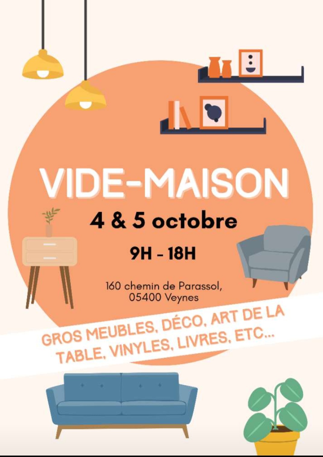Bricolage Jardinage : Outil de jardinage, fraise à neige, arrosage… Loisirs : matériel de camping Meubles : mobliers de chambres (lits, tables de nuits commodes…) Vaisselles : art de la tables, petit électroménager (actuel et vinted). Culture : Diques 33T vyniles, CD, CDRom, encyclopédies, littérature, lecture, Décoration, Horlogerie, Meubles….