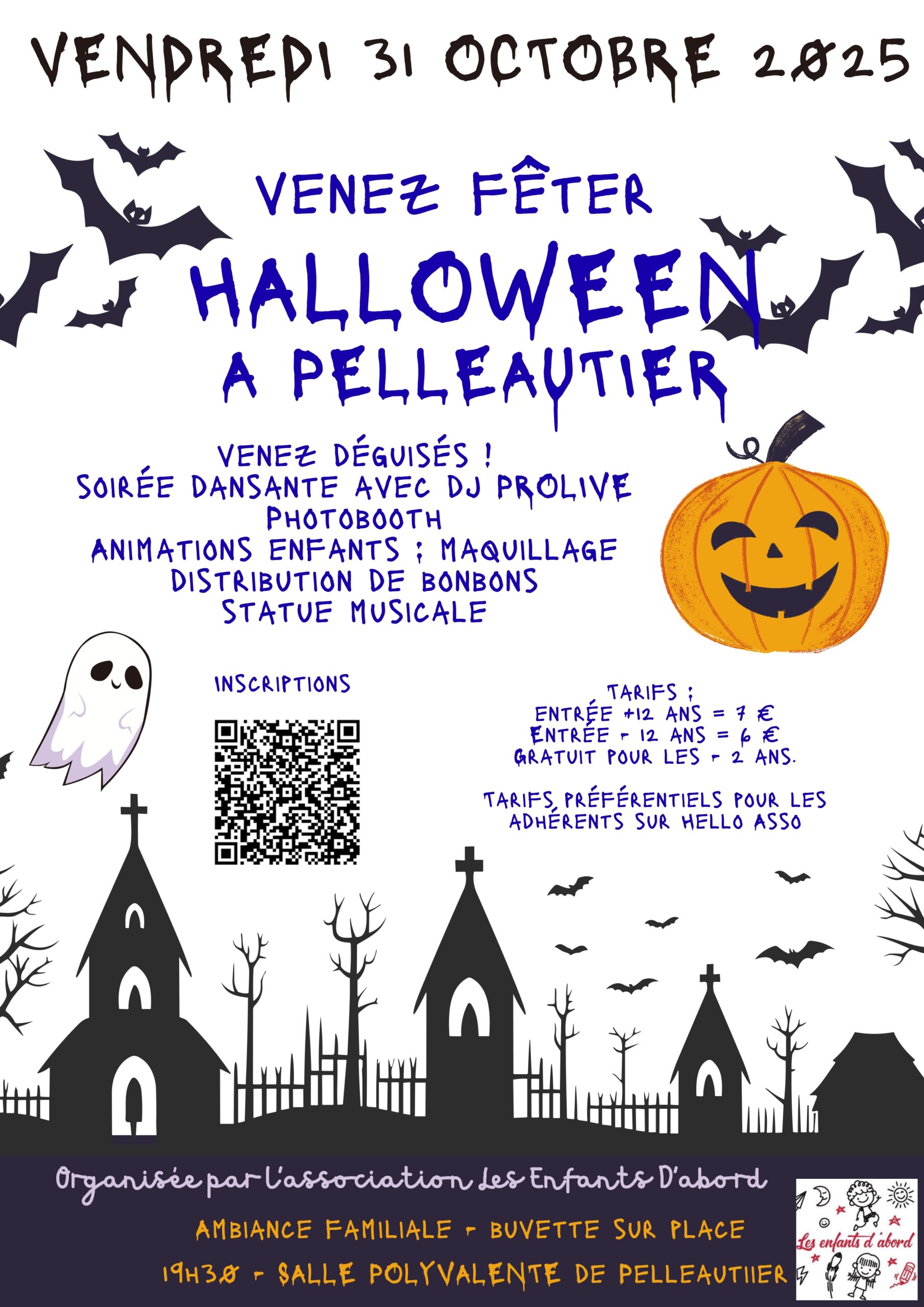 Rendez-vous pour une soirée déguisée sur le thème d’Halloween. Au programme : – soirée dansante, – maquillage d’Halloween, – statue musicale, – lancer de bonbons, – soirée dansante pour petit et grand avec DJ PROLIVE. Buvette et Snack sur place, Bénéfice au profit de l’association les Enfants d’abord des communes de Pelleautier et la Freissinouse. Attention place limitée – il convient de réserver sur le lien HelloAsso.