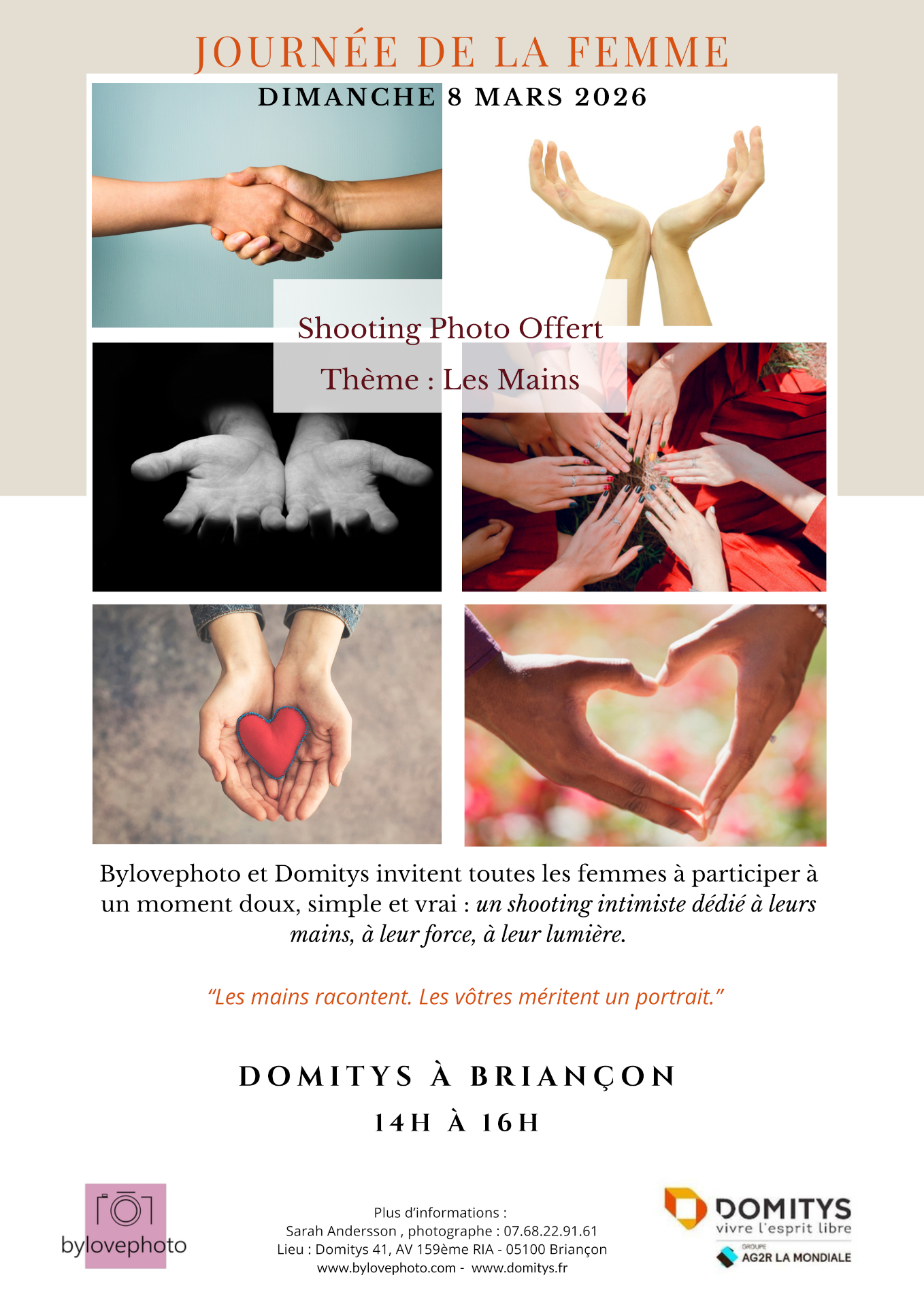 Bylovephoto et Domitys invitent toutes les femmes à participer à un moment doux, simple et vrai : un shooting intimiste dédié à leurs mains, à leur force, à leur lumière. “Les mains racontent. Les vôtres méritent un portrait.”