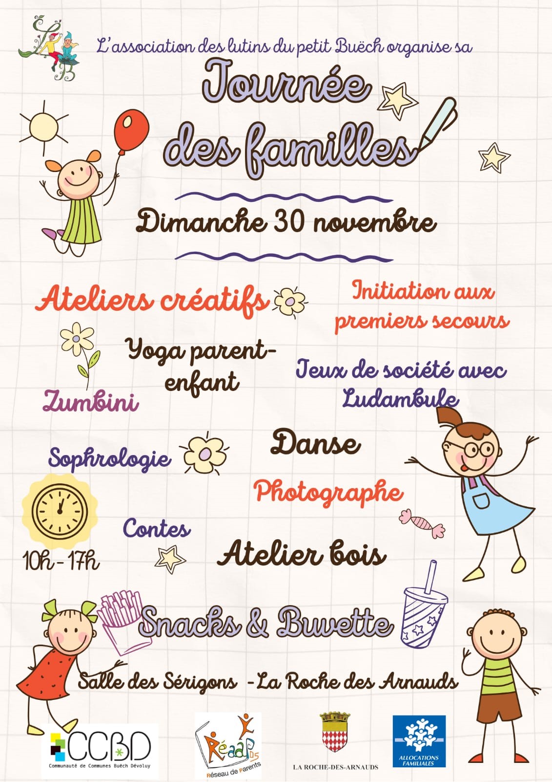 Les Lutins du Petit Buëch pour le financement des projets des enfants, tissons des liens entre l’école et le village. On vous attend pour découvrir nos ateliers, partager , déguster une crêpe, tout simplement vous détendre… Venez nombreux ! Les Lutins vous attendent