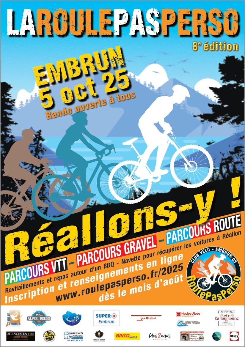 Nous vous proposons la 8 ème édition de notre évènement convivial sans chrono, avec 4 parcours VTT dont 2 avec des descentes XXL, 3 parcours route.