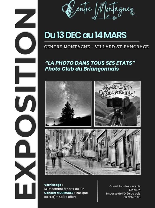 Au programme : 10h : ouverture du domaine nordique 13h30-15h30 : INITIATION BIATHLON vient découvrir cette discipline. Apportez vos skis, le Centre Montagne et le Club Edelweiss s’occupent du reste ! 19h : VERNISSAGE EXPOSITION du Club Photo Briançonnais et CONCERT “MURMURES”, duo accordéon, saxophone et voix. Musique des pays de l’Europe de l’Est.