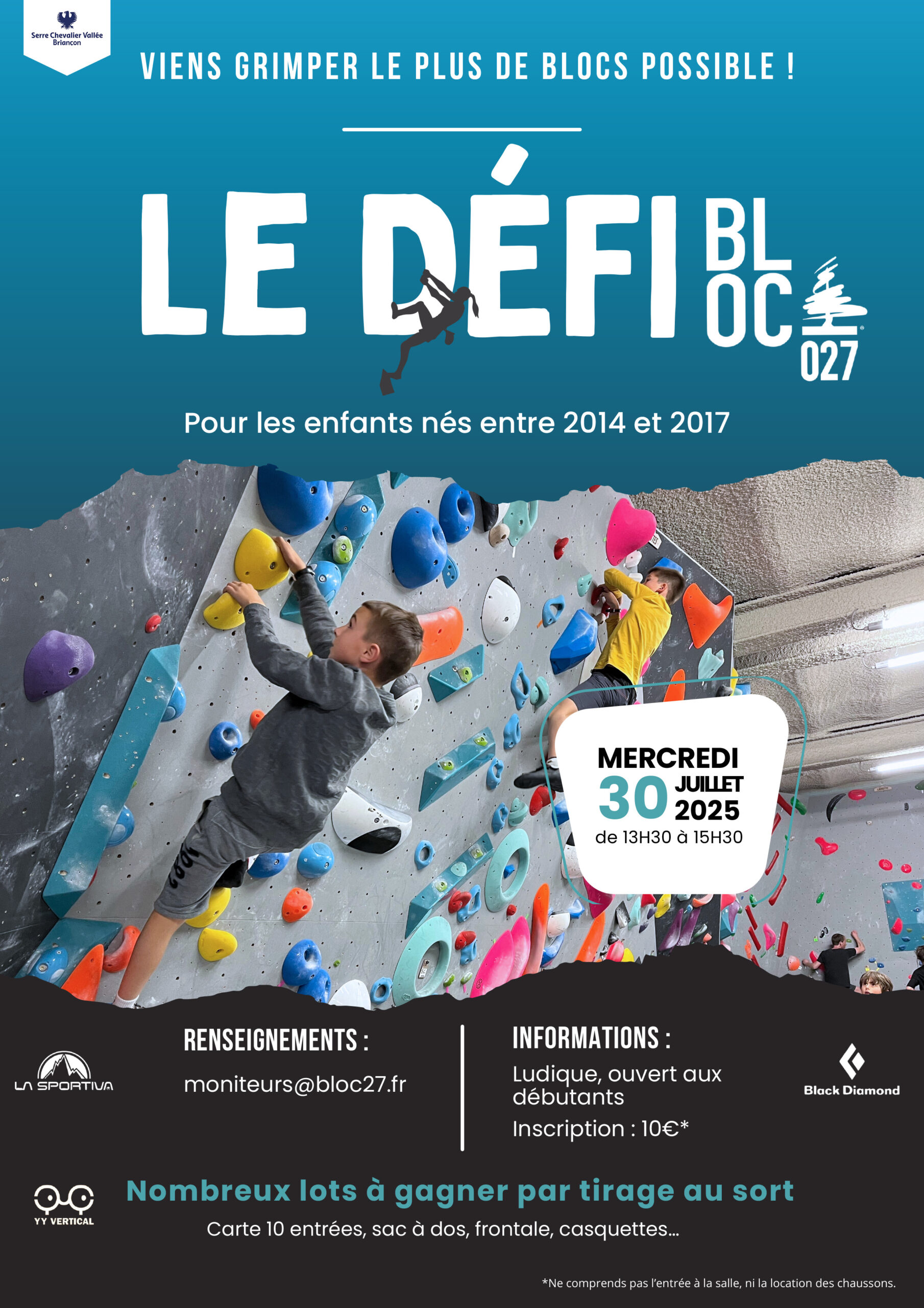 Pendant une après-midi ludique, viens te mesurer à tes copains en essayant de grimper le plus de blocs possible ! Un tirage au sort sera effectuer et tu pourras gagner de nombreux lots, Carte de 10 entrées; sac à dos, frontale, casquettes,… Pour les enfants nés entre 2014 et 2017.