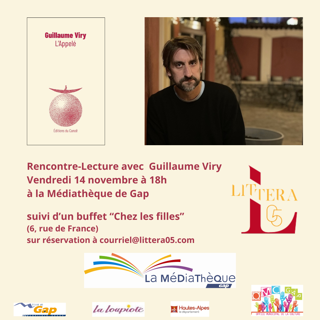 Rencontre avec Guillaume Viry, comédien, qui nous lira de larges extraits de son premier roman “L’Appelé”, invité par l’association Littera05 Résumé : Jean est appelé en Algérie en 1962. De retour en France, c’est à l’âge de trente ans qu’il meurt lors d’un dernier séjour à l’asile. Soixante ans plus tard, il suffit de presque rien, d’une confusion de prénom, pour que le passé surgisse comme une déflagration et redonne vie à l’histoire de Jean, l’appelé.