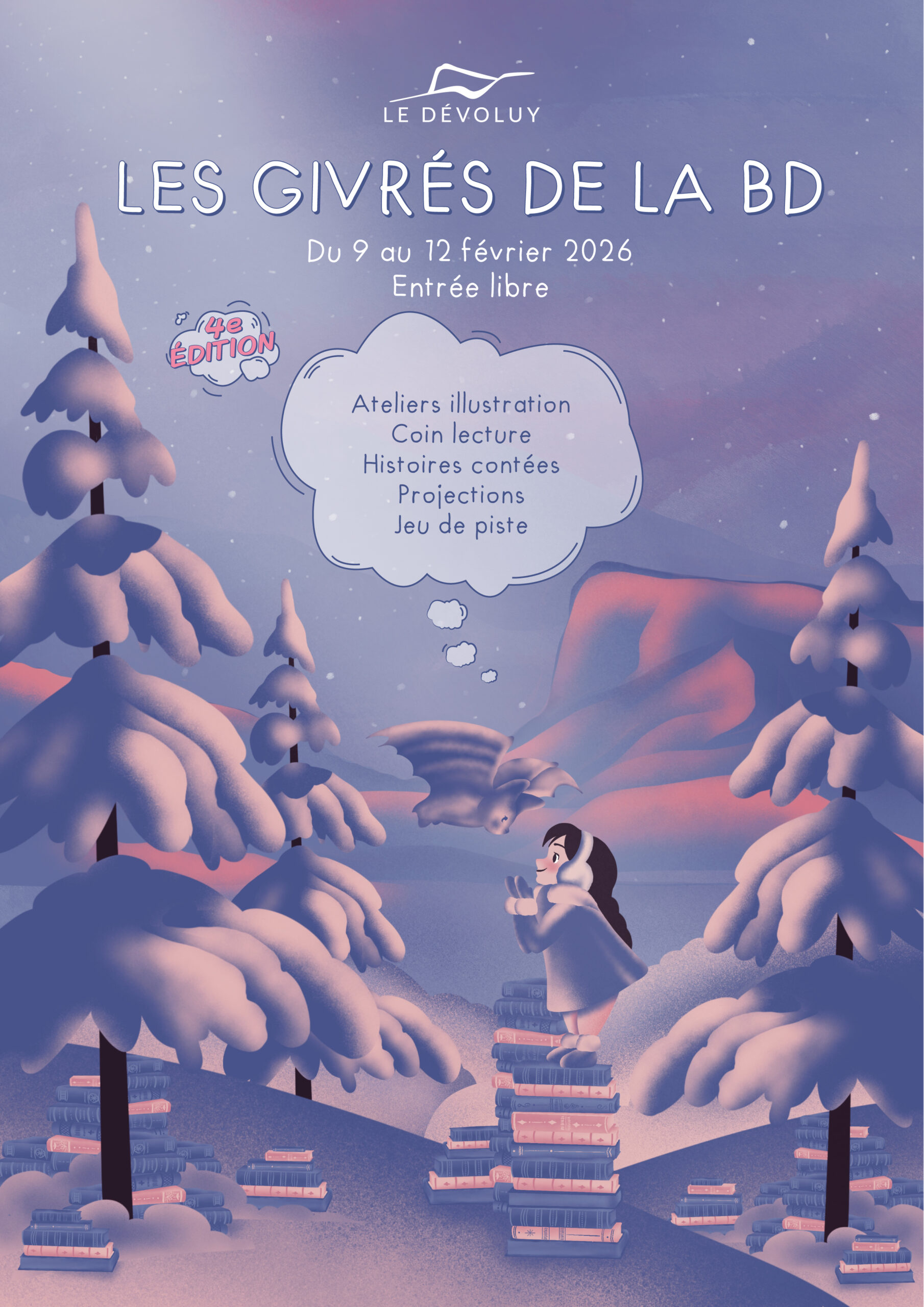 Programme : – 10h30-12h30 : Mini-récits humoristiques en cabine Télémix des Fontettes / Avec un forfait de ski ou piéton valide Dans une des télécabines des Fontettes, écoutez de courts récits humoristiques en lien avec la montagne, au profit de l’association Main dans la main autour du monde. – 14h -16h : Ta BD de vacances avec Francesca de l’Office de Tourisme Maison d’accueil de Superdévoluy Pour les 5-11 ans | 15 pers. max, sur inscription Atelier de création de BD à partir de collages et autres jeux pour développer son imagination ! – 15h-19h : Ton portrait en live style BD avec Marie dans ma Bulle Maison d’accueil de Superdévoluy – Gratuit Assieds-toi en face de Marie, souris, repars avec ton portrait ! Croquis offert. Distribution sur place de ticket pour l’ordre de passage. – 16h-18h : Pause lecture avec le kamishibai et Muriel de la médiathèque Maison d’accueil de Superdévoluy Tout âge | Entrée libre – 16h-18h : Ta BD de vacances avec Francesca de l’Office de Tourisme Maison d’accueil de Superdévoluy Pour les 5-11 ans | 15 pers. max, sur inscription Atelier de création de BD à partir de collages et autres jeux pour développer son imagination ! – 16h-17h30 : Atelier créatif «Ma mini BD en duo» avec Orlane Pourroy Maison d’accueil de Superdévoluy 6-12 ans | 15 pers. max, sur inscription Dessine ton personnage, puis avec un copain, concevez votre mini-BD à 2 cases. – 17h30-19h : Atelier créatif «Ma mini BD en duo» avec Orlane Pourroy Maison d’accueil de Superdévoluy 6-12 ans | 15 pers. max, sur inscription Dessine ton personnage, puis avec un copain, concevez votre mini-BD à 2 cases. – 18h-19h : Ta BD de vacances & jeux avec Francesca de l’Office de Tourisme Maison d’accueil de Superdévoluy Pour les 5-11 ans | 15 pers. max, sur inscription Atelier de création de BD à partir de collages et autres jeux pour développer son imagination ! – 17h30-19h : Session Glisse nocturne Front de neige de La Joue du Loup / Avec un forfait de ski valide – 18h15 : Session Dessin animé | À partir de 5 € Cinéma de Superdévoluy : Te Fiti Cinéma de La Joue du Loup : Heidi, fille des Alpes