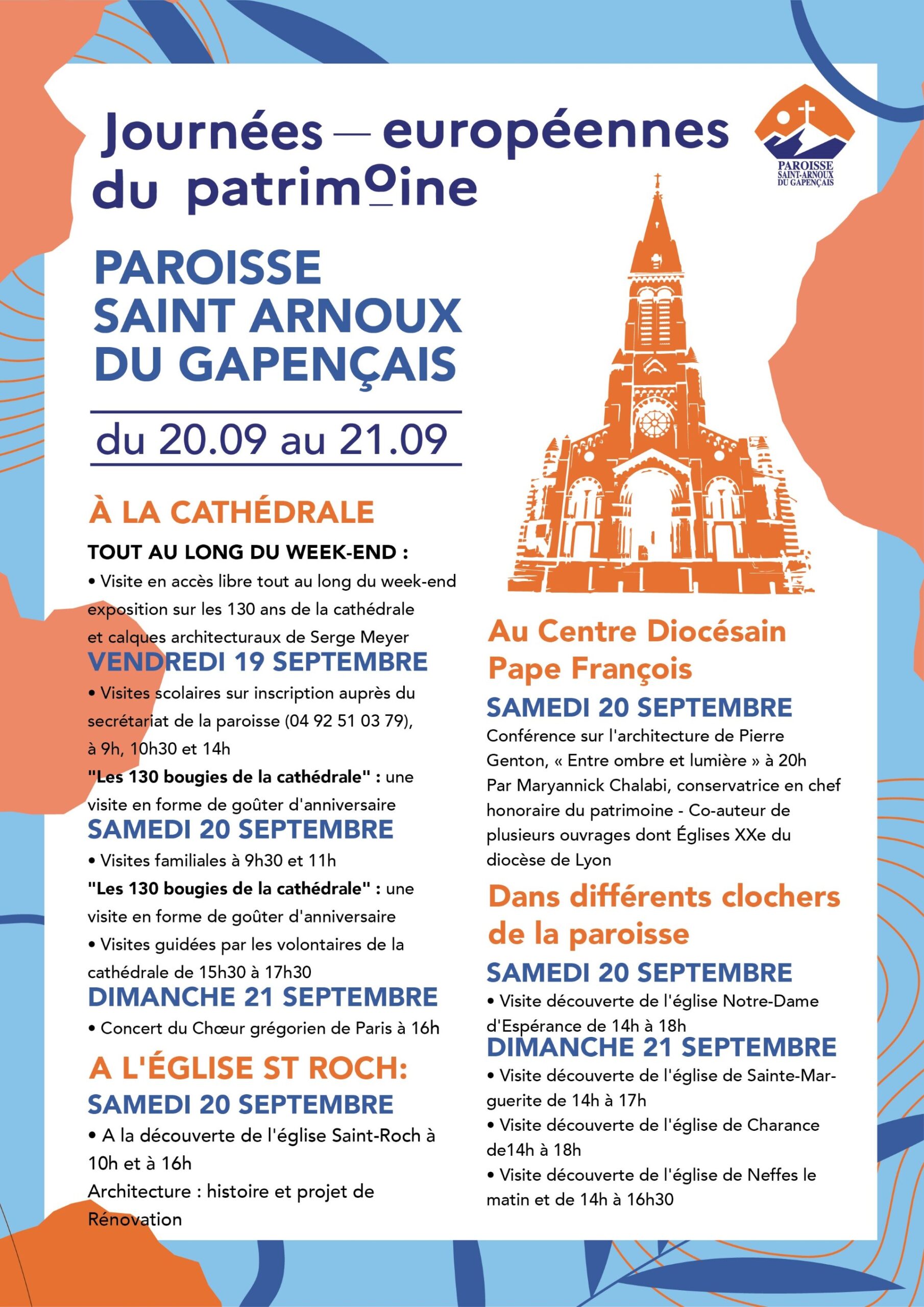 Samedi 20 septembre > Visite découverte de l’église Notre-Dame d’Espérance de 14h à 18h Dimanche 21 septembre > visite découverte de l’église de Sainte-Marguerite de 14h à 17h > visite découverte de l’église de Charance de14h à 18h > visite découverte de l’église de Neffes le matin et de 14h à 16h30