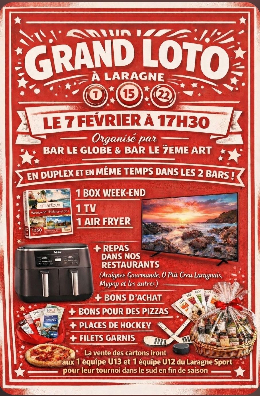 La vente de carton ira aux 1 équipe U13 et 1 équipe U12 du Laragne Sport pour leur tournoi dans le sud en fin de saison. Repas dans nos restaurants : Araignée Gourmande, O P’tit Creu Laragné, Maypop et les autres