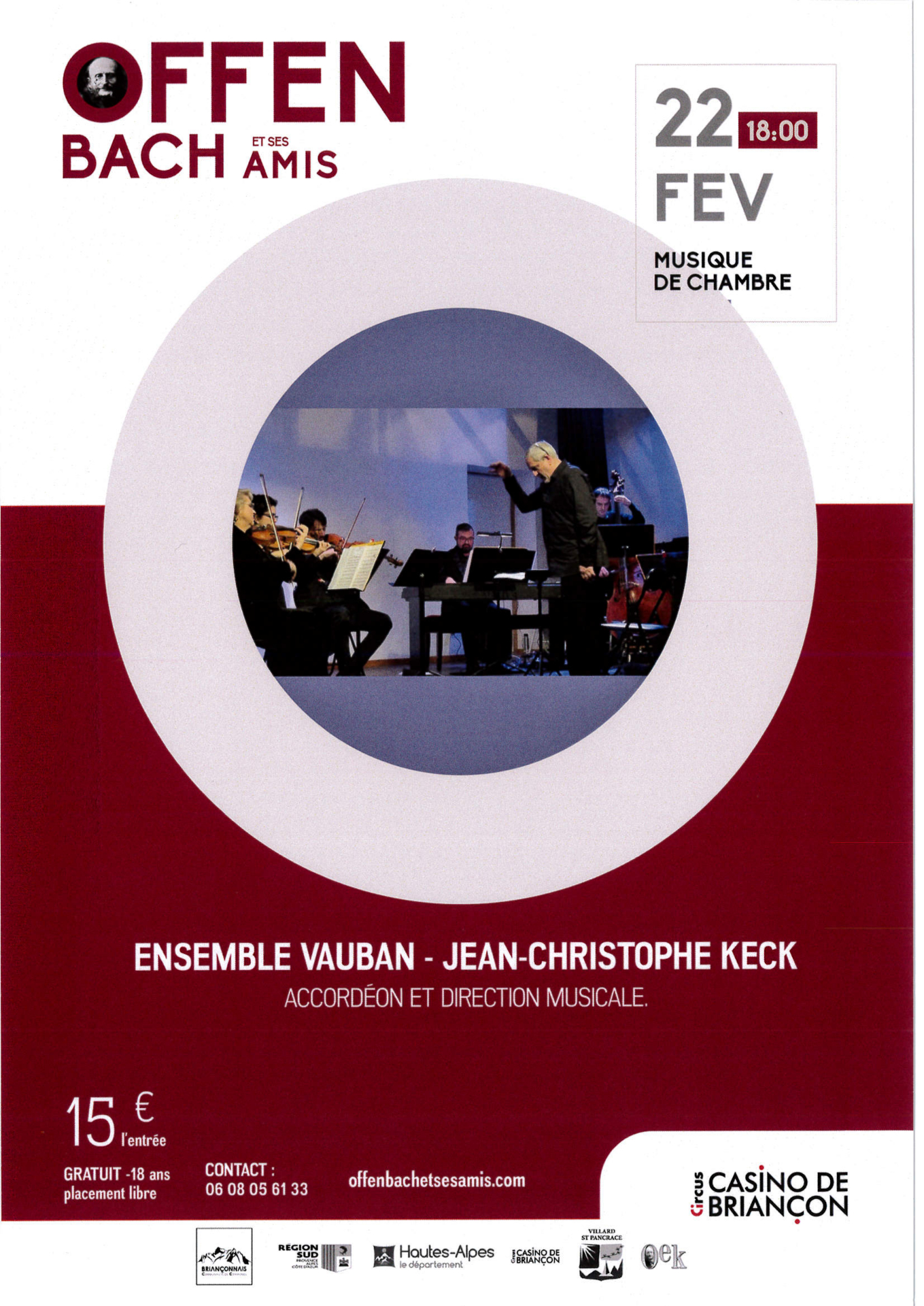 Briançon – Ensemble Vauban – Jean-Christophe Keck, accordéon et direction musicale. Un joli programme de musique de chambre, mais dans sa version la plus légère, la plus divertissante et la plus populaire qui soit.