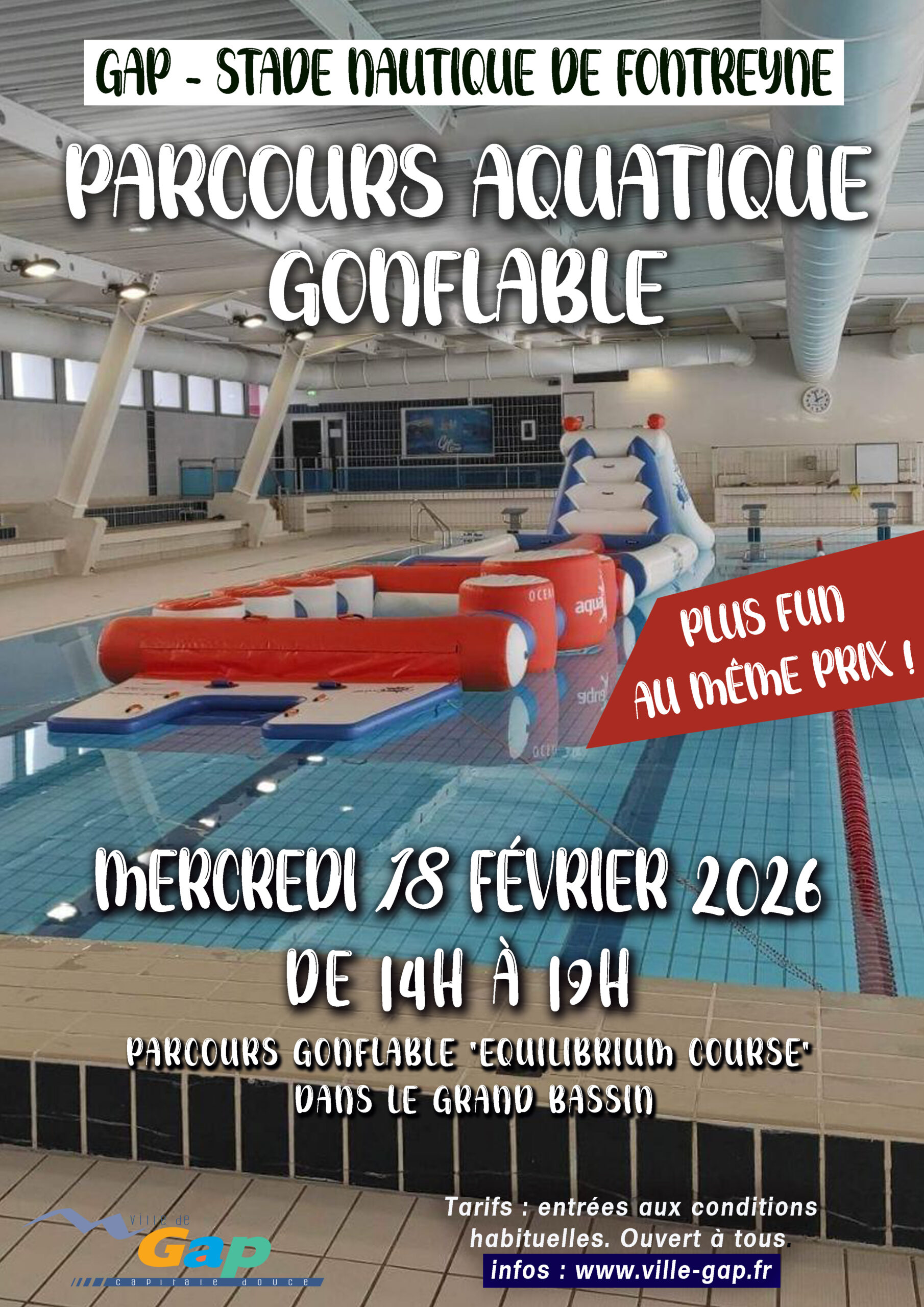 Venez nombreux vous amuser au parcours aquatique gonflable dans le grand bassin au stade nautique de Fontreyne Animation pour tous, avec plus de fun au même prix !