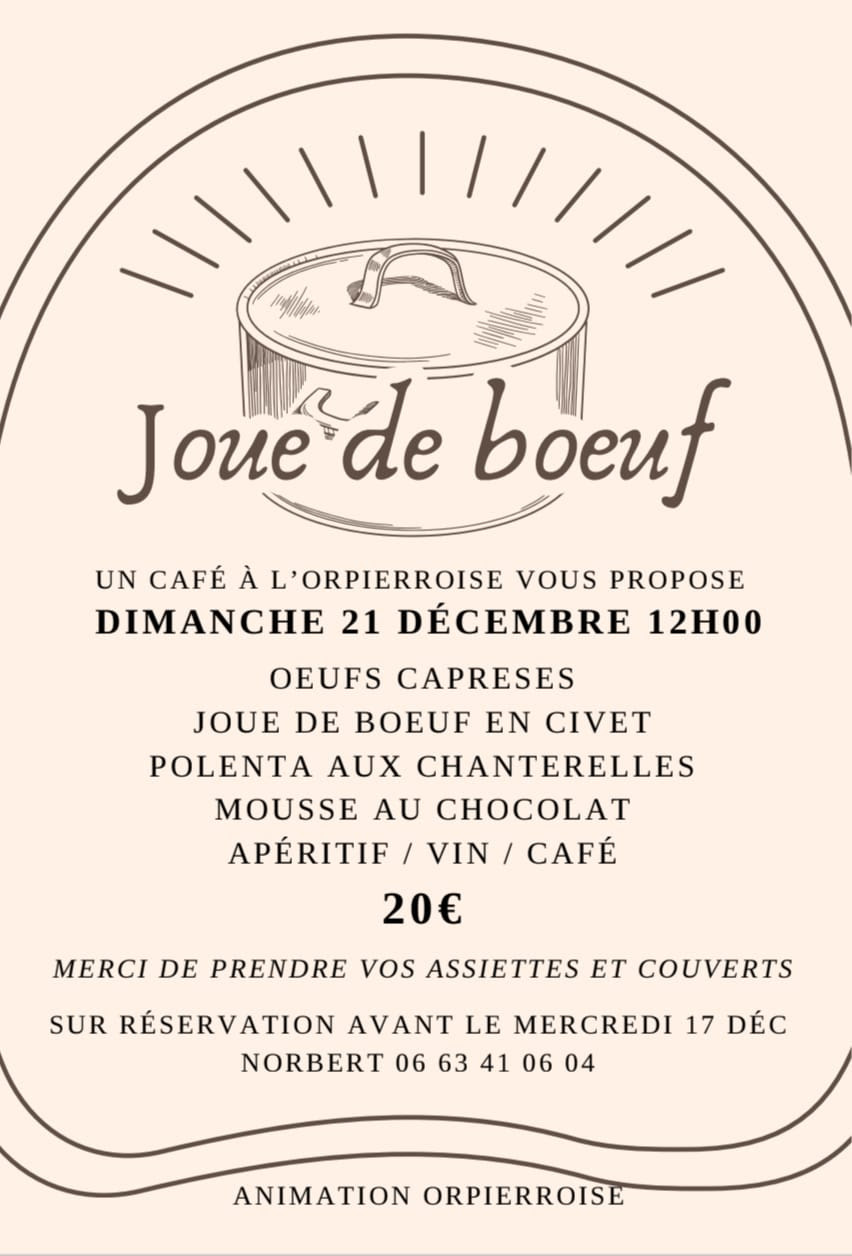 Sur réservation. Merci de prendre vos assiettes et couverts.