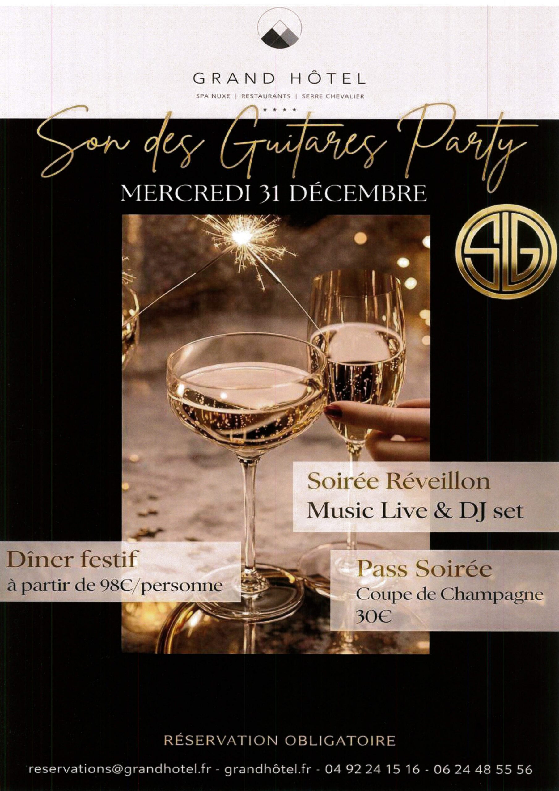Une soirée live exceptionnelle vous attend avec “Au Son des Guitares Party”, suivie d’un DJ set pour célébrer le passage à la nouvelle année !