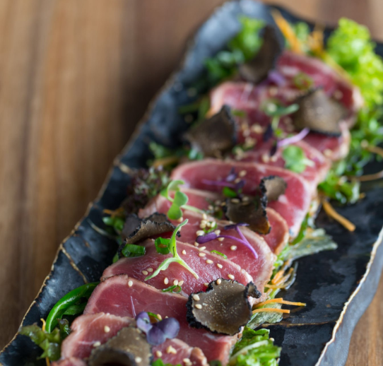 Menu à 49 euros hors boissons, concocté et réalisé par le Chef avec des plats maisons …. Ils vous attendent et si vous souhaitez partager ce moment culinaire allô au 0643815197 Mises en bouche Pour commencer Salade festive : lit de salade avec brick de samossa au chèvre, gésier de volaille confit, magret séché, toast de terrine de foie gras, éclat de noix On continue Mi-cuit de thon façon Tataki et sa petite purée colorée Pour patienter Un petit sorbet citron arrosé de génépi On reprend Filet Mignon farci à la duxelle de champignons et sa farandole de légumes L’assiette du maître affineur On fini avec sa petite douceur Trio de pâtisserie