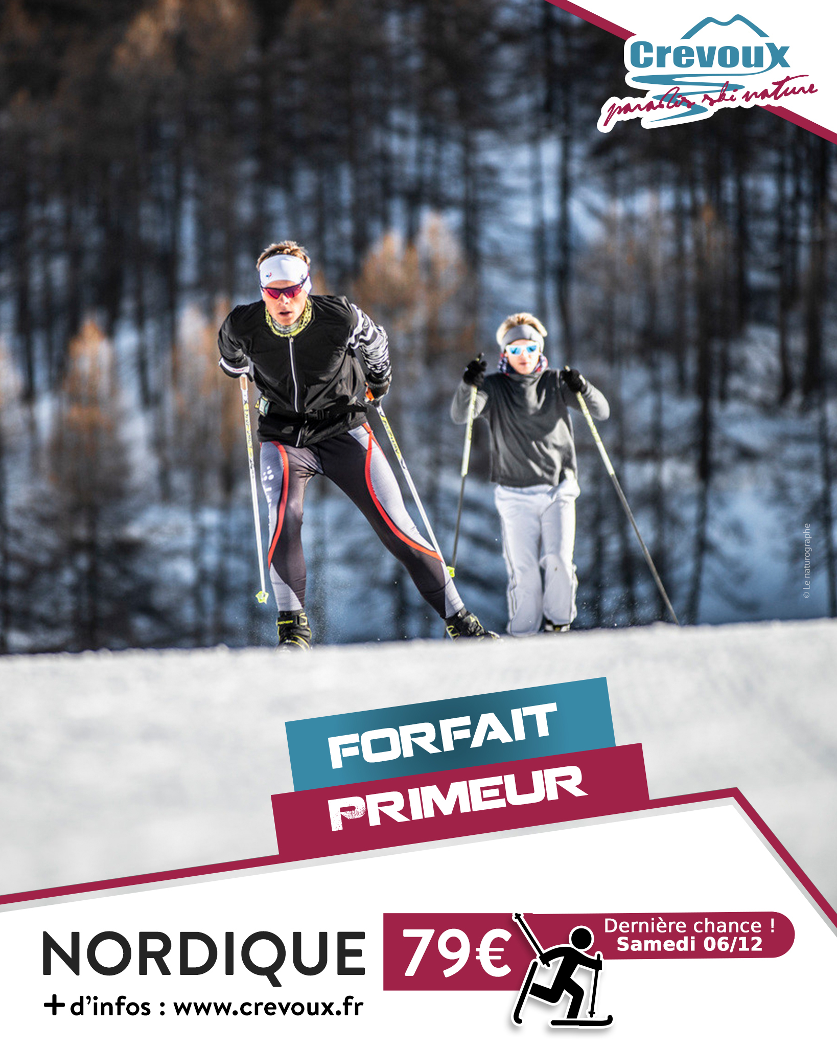 Commandez en ligne, ce jour-là uniquement, votre forfait saison à 79 € au lieu de 103 € (plein tarif). Avec ce pass, c’est accès illimité aux pistes de ski nordique de Crévoux du 20 décembre 2025 au 29 mars 2026. Une dernière date, une dernière chance, à ne pas manquer… Offrez-vous la liberté de skier tout l’hiver sans contrainte, et lancez votre saison en beauté !