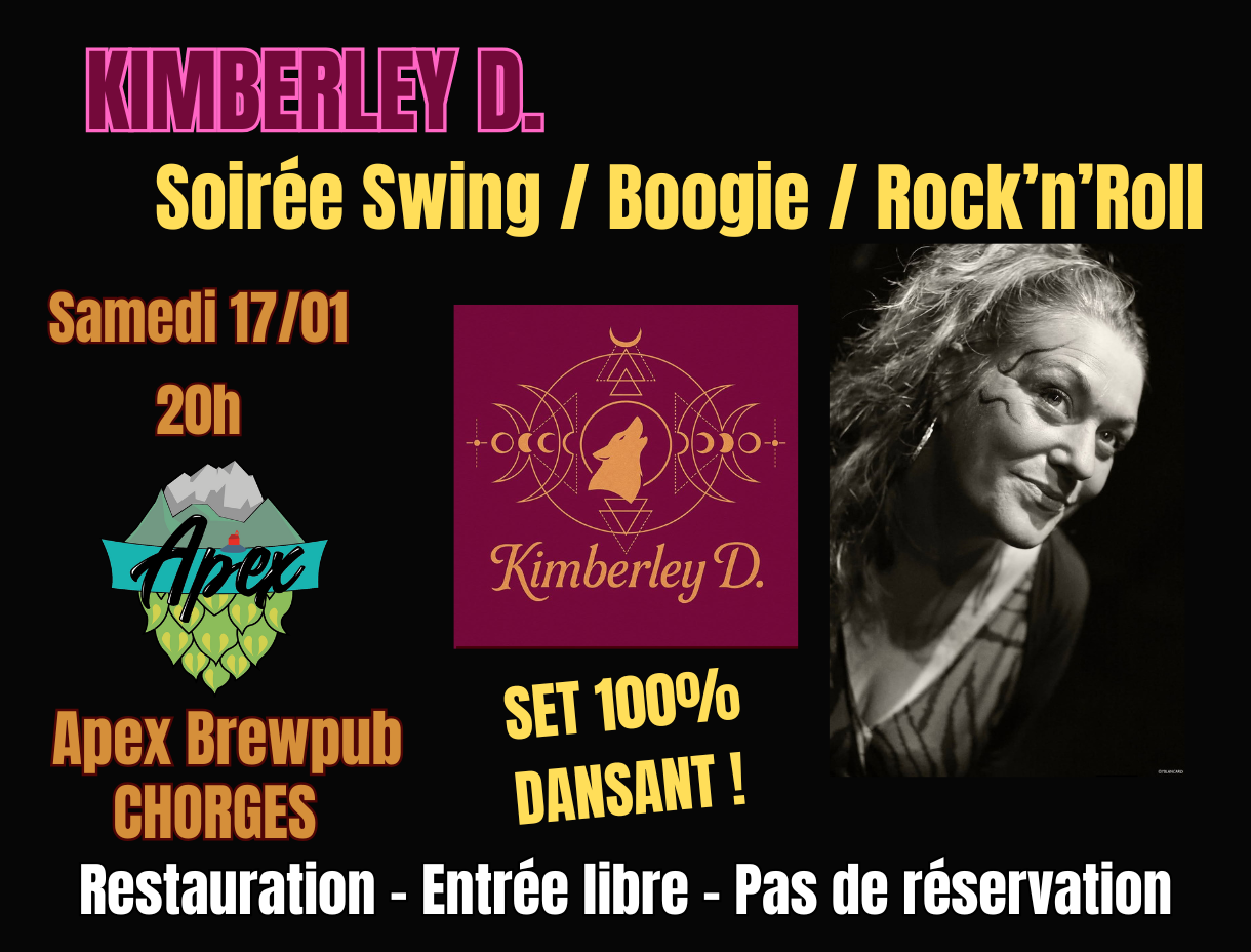 Kimberley D. en live Un set 100% dansant, taillé pour le Swing, le Boogie et le Rock’n’Roll : – tempos qui roulent – grooves qui rebondissent – énergie vivante, organique, généreuse Ici, on peut vraiment danser : de l’espace, un sol adapté et Une salle chaleureuse où les corps peuvent circuler! Et si on lançait quelque chose ? Si vous êtes au rendez-vous, si la piste se remplit, le lieu pourrait devenir un spot régulier pour les danseurs swing & rock du coin? Alors danseurs, danseuses, faites passer le mot, venez en couple ou en solo… Le groove fera le reste. Restauration sur place Live – Set 100% dansant
