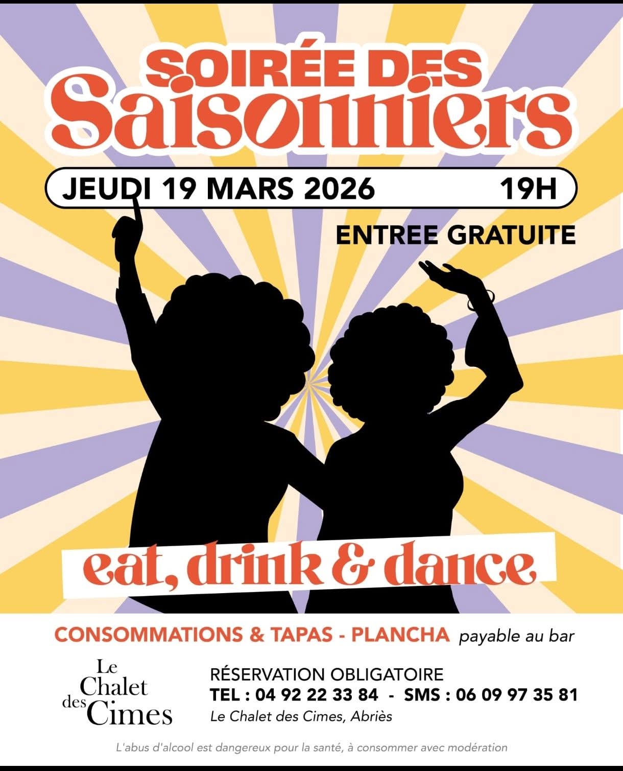 Réservation conseillée au tél 04 92 22 33 84 ou par SMS 06 09 97 35 81