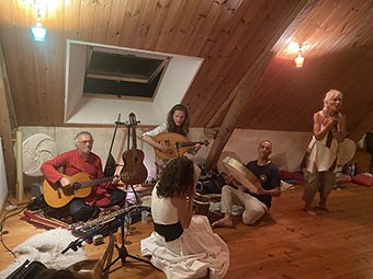 avec la présence de Bayram Varsak au daf Sargam Marie Dit Asse au oud Stéphane Thomas à la flûte PROGRAMME Danse en lien avec les festivités de Shab-i-Aruç à Konya (commémoration de la mort de Rûmî) Méditation guidée puis chants soufis ou dikrs suivis des danses soufis Musique en live Ces danses s’enchainent toute la soirée et se poursuivent une partie de la nuit, le but est de maintenir un cercle de danse avec toujours quelques danseurs qui se relaient Les danses se poursuivront non-stop jusqu’ à 1h du matin. Tout le monde peut expérimenter le tournoiement ! Tarification 25€ la soirée Hébergement sur réservation PAF 25€ / Camping 15€