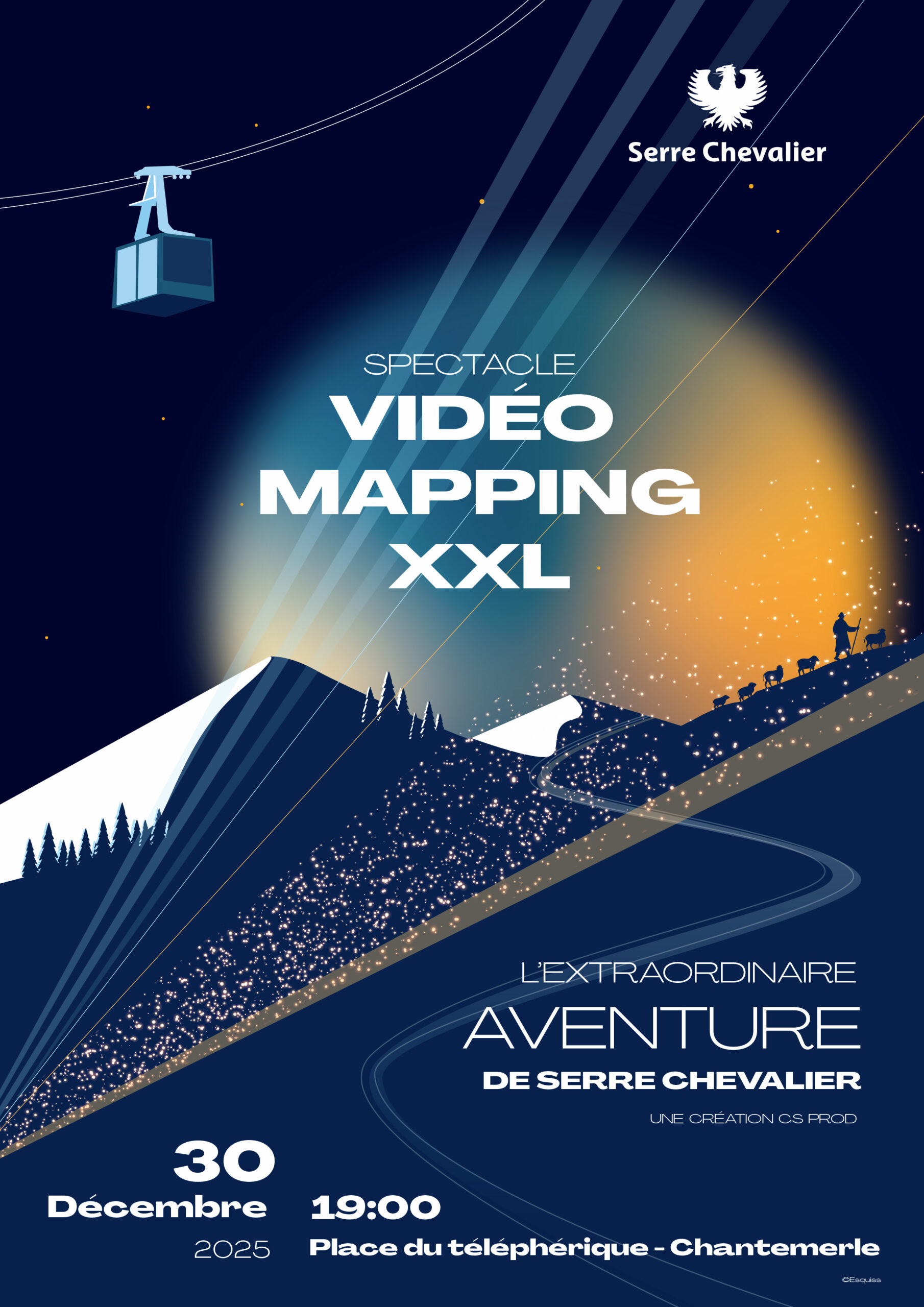 Laissez-vous émerveiller par notre vidéo mapping XXL «L’extraordinaire aventure de Serre Chevalier». Sur la piste Luc Alphand, la nature et la mémoire des lieux se mêleront à la technologie la plus pointue pour donner naissance à un spectacle hors du commun. Entre ombre et lumière, glace et feu, passé et présent, l’histoire de Serre Chevalier se révèlera dans une fresque à la fois poétique et spectaculaire. Des images monumentales, des effets mystérieux, une mise en scène immersive… autant d’éléments qui transporteront le spectateur dans un monde inattendu. Un voyage sensoriel et onirique, où rien ne sera tout à fait réel… ni tout à fait imaginaire. Un grand spectacle se prépare… votre arrivée aussi. Nous vous conseillons de privilégier les navettes village, le bus ou la marche ! Anticipez votre arrivée pour ne rien rater et profiter sereinement du spectacle .