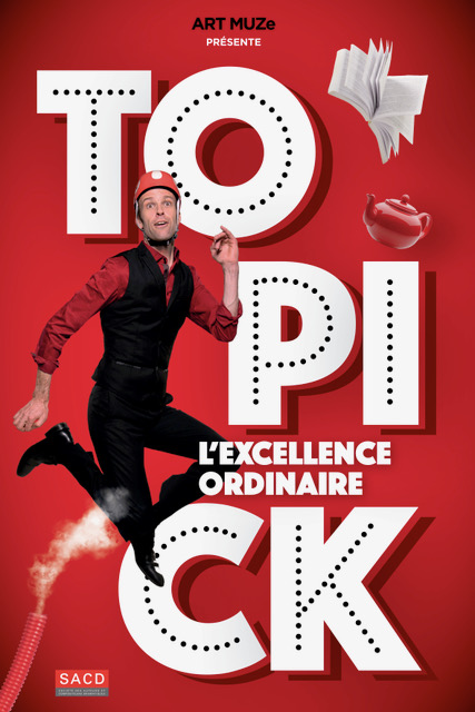 Sans argent, sans culture, doté d’un physique de porte-manteau… C’est mal embarqué pour Topick. Comment tordre le cou à la fatalité et atteindre l’Excellence ? Héritier direct de Gaston Lagaffe, Topick transforme les situations les plus banales en aventures loufoques totalement bordéliques… Tout un art ! L’entretien d’embauche fait perdre son latin à un DRH médusé, un micro s’envole, un porte-manteau fume, boire un thé devient une performance avant-gardiste… Gags, franc parler et franche rigolade font exploser normes et conventions, et propulsent l’artiste en haut de l’échelle. Topick fait de l’Excellence son Ordinaire.
