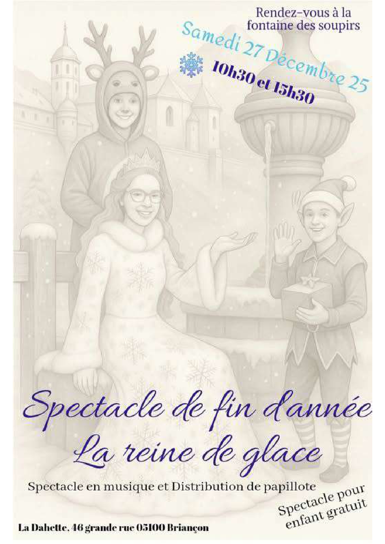 Spectacle en musique avec distribution de papillotes. Rendez vous à la fontaine des Soupirs.