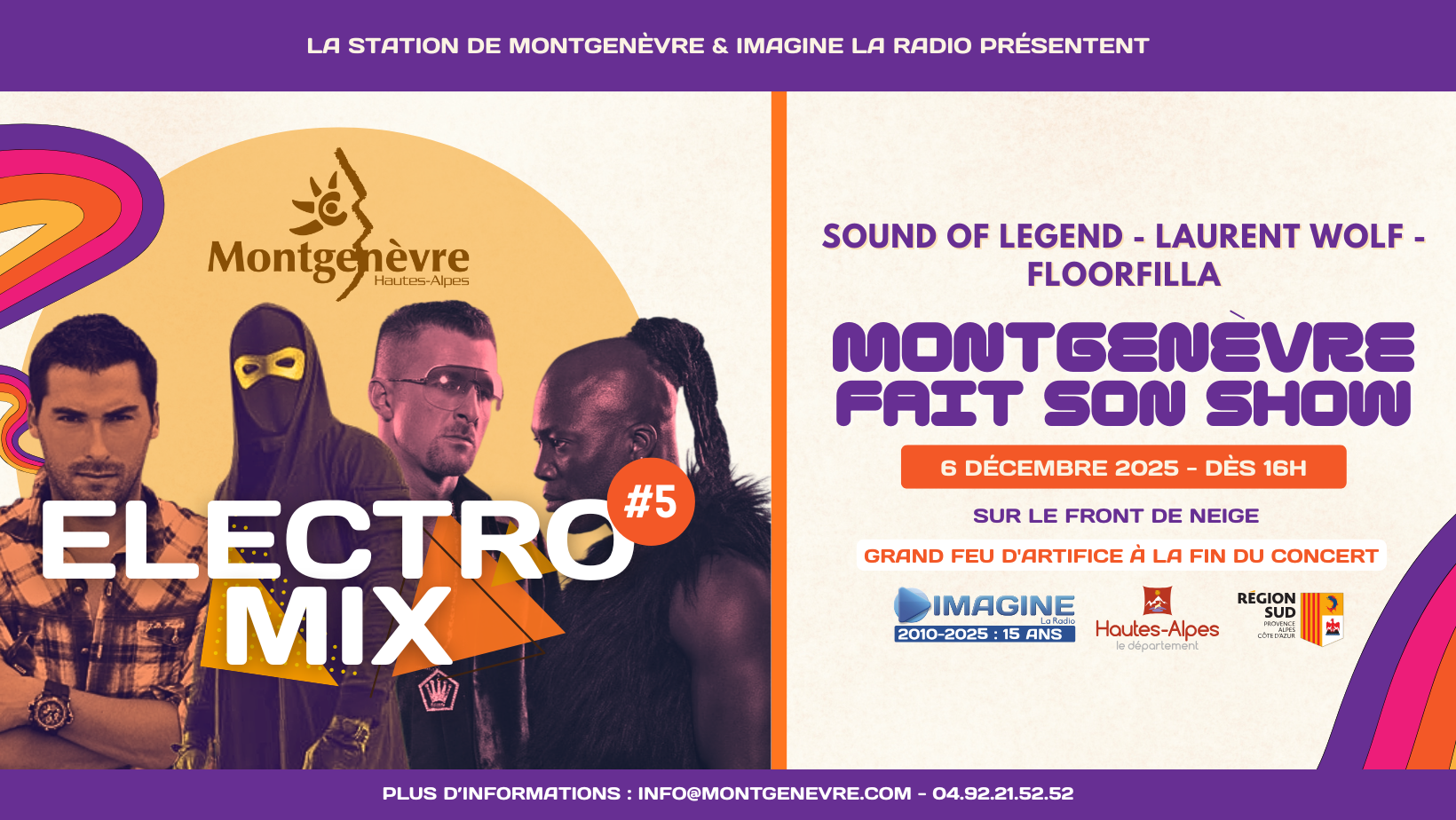 Préparez-vous à une soirée exceptionnelle au cœur des Alpes du Sud ! Le 6 décembre 2025, à partir de 16h30, Montgenèvre se transforme en dancefloor géant avec Montgenèvre Fait Son Show DJ Floorfilla – Les maîtres de l’electro et du dancefloor pour enflammer la soirée. Sound of Legend – Le phénomène masqué qui revisite les plus grands tubes en version électro. Laurent Wolf – Le DJ star aux hits planétaires comme No Stress pour une fin de soirée explosive. (Laurent Wolf est contraint de reporter son passage le 6 décembre, mais sera à Montgenèvre le 4 avril prochain!) Ambiance garantie : lumière, son, fête et bonne humeur au programme, pour une soirée mémorable sous les étoiles de Montgenèvre. Un rendez-vous incontournable pour lancer la saison d’hiver en beauté !